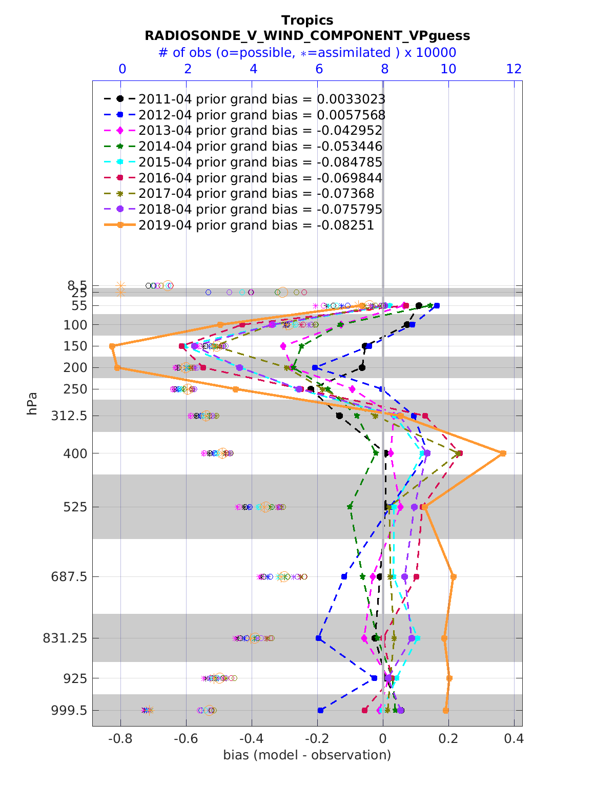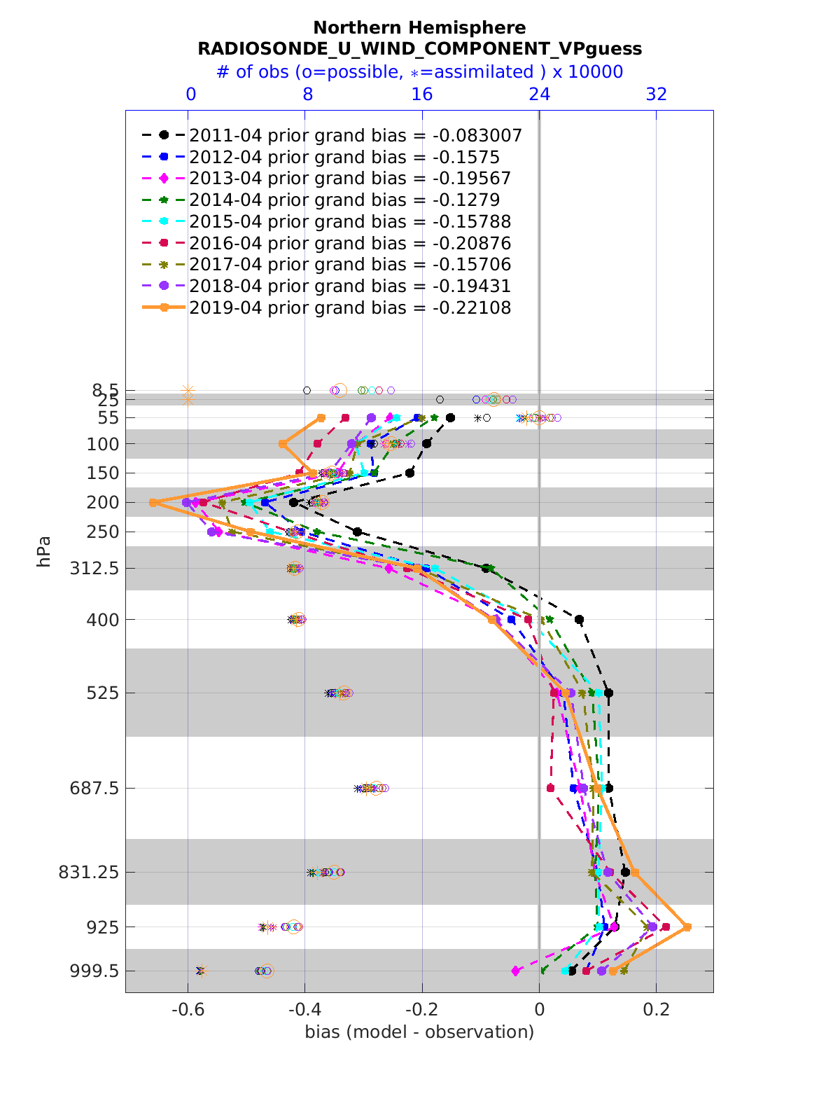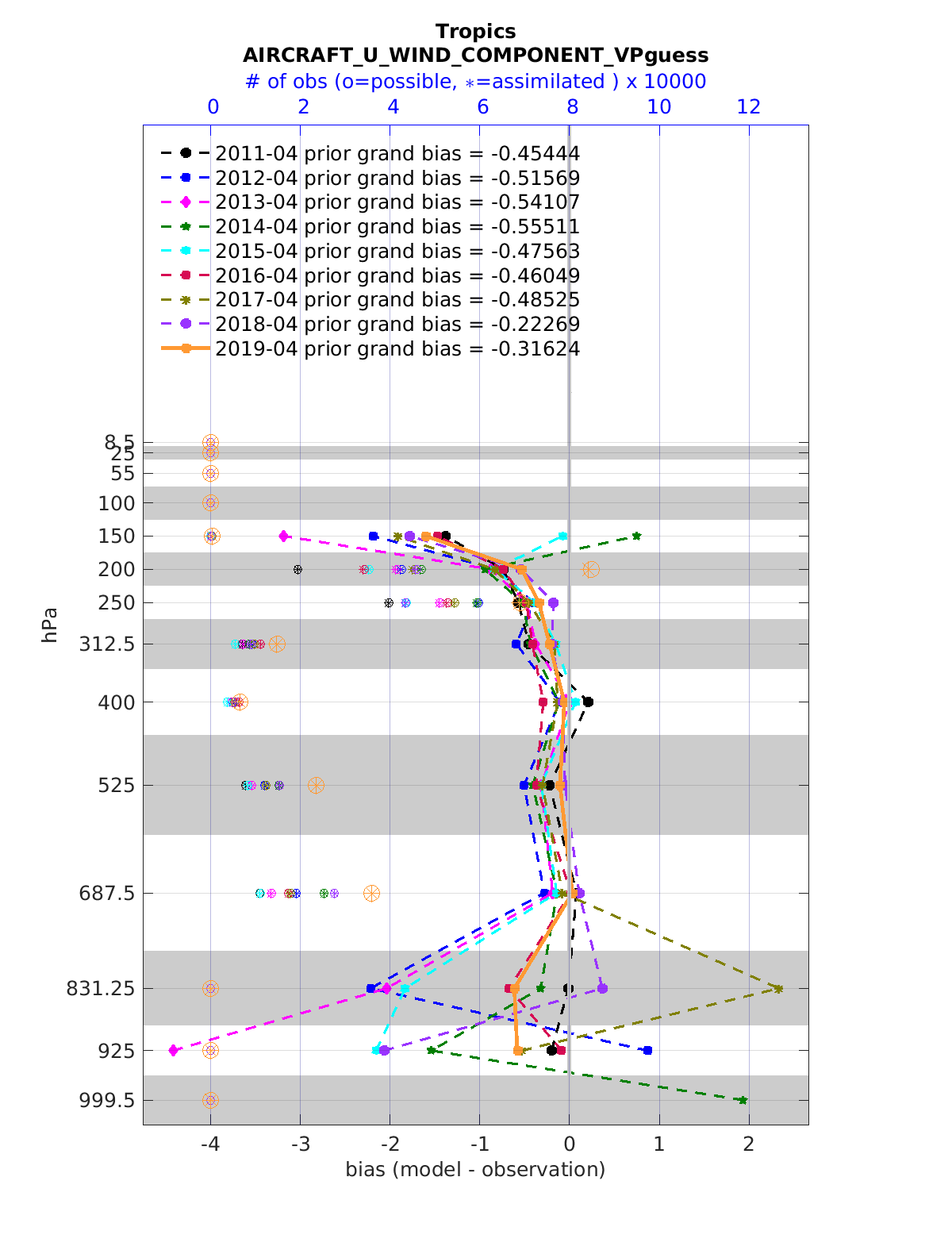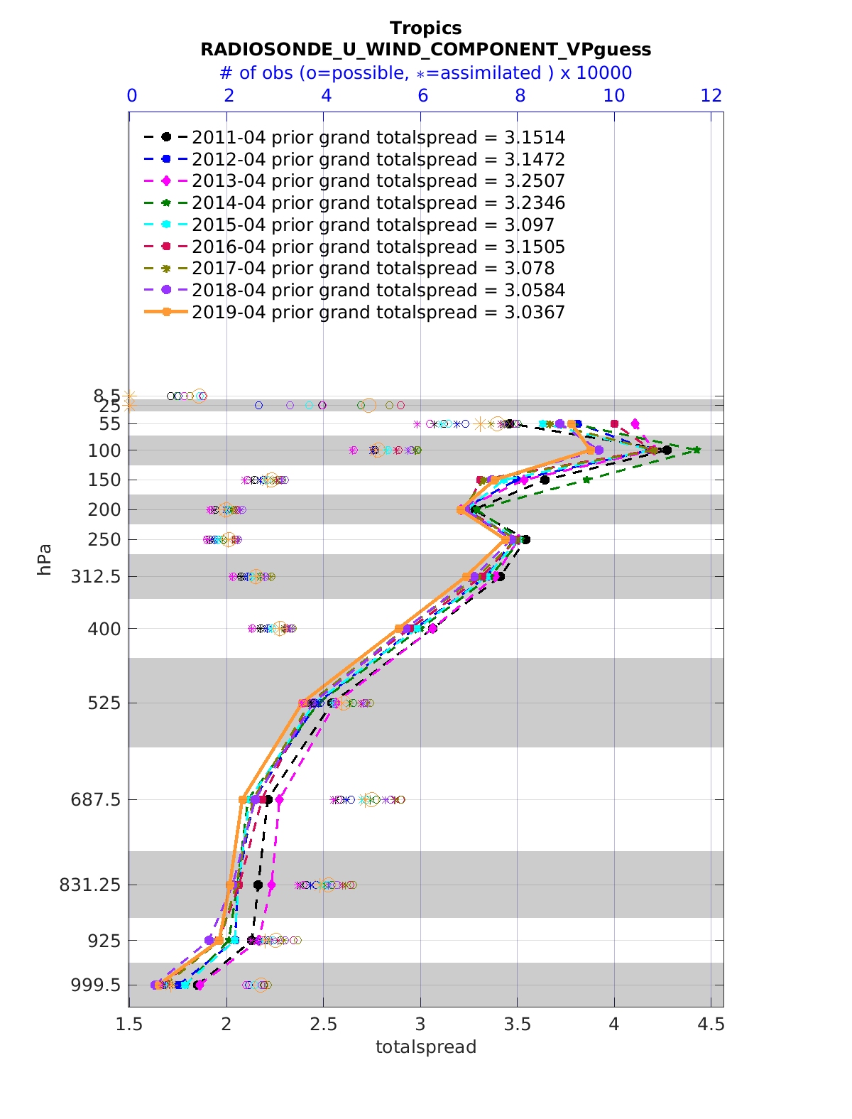 Comparison of all April Vertical Profiles for the CESM Reanalysis