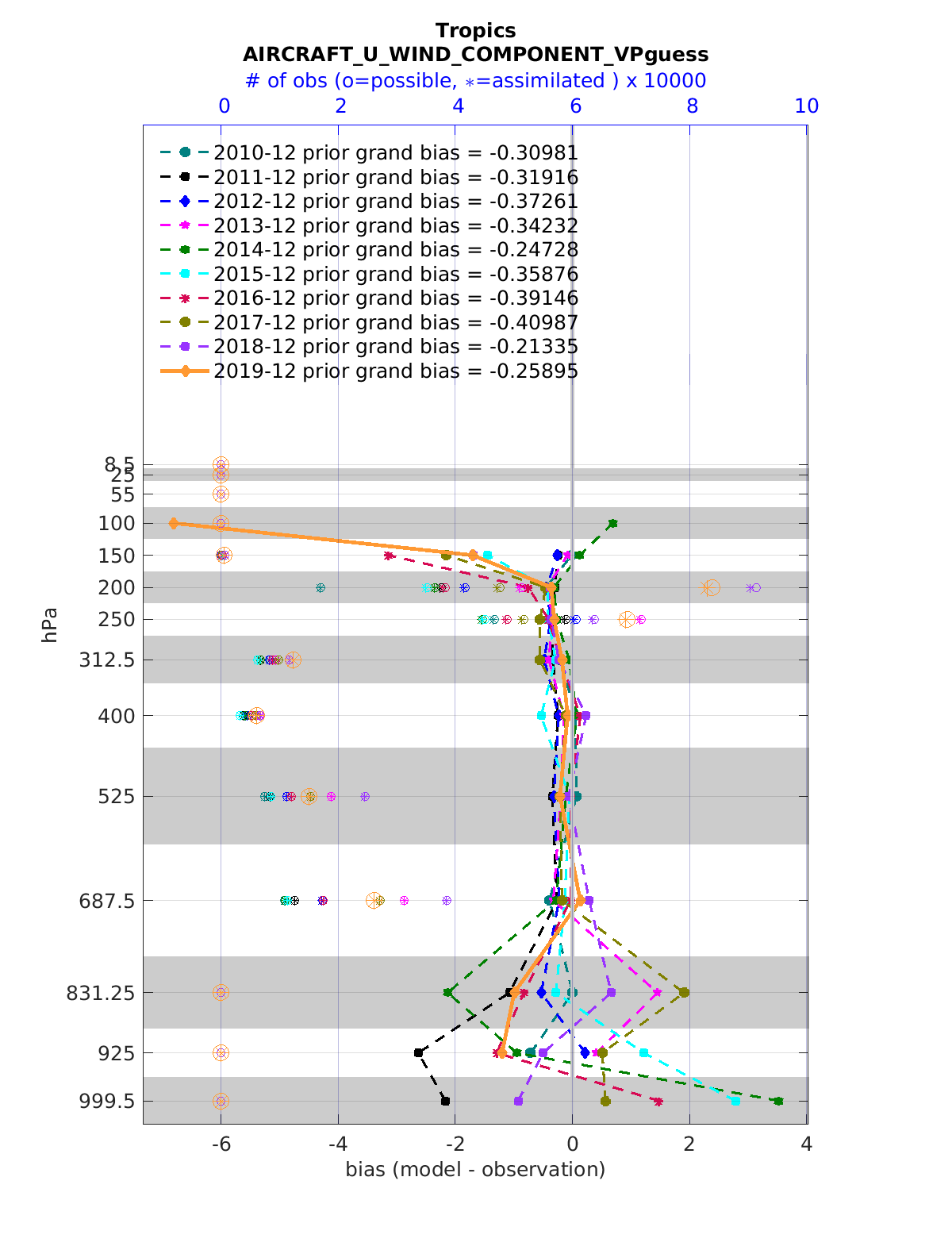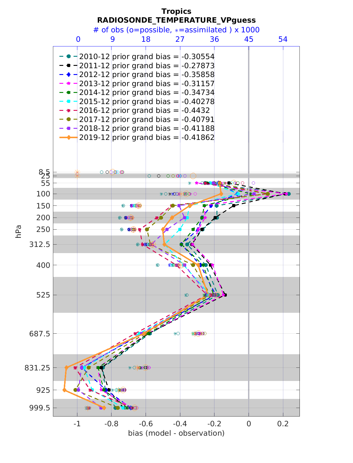 Comparison of all December Vertical Profiles for the CESM Reanalysis