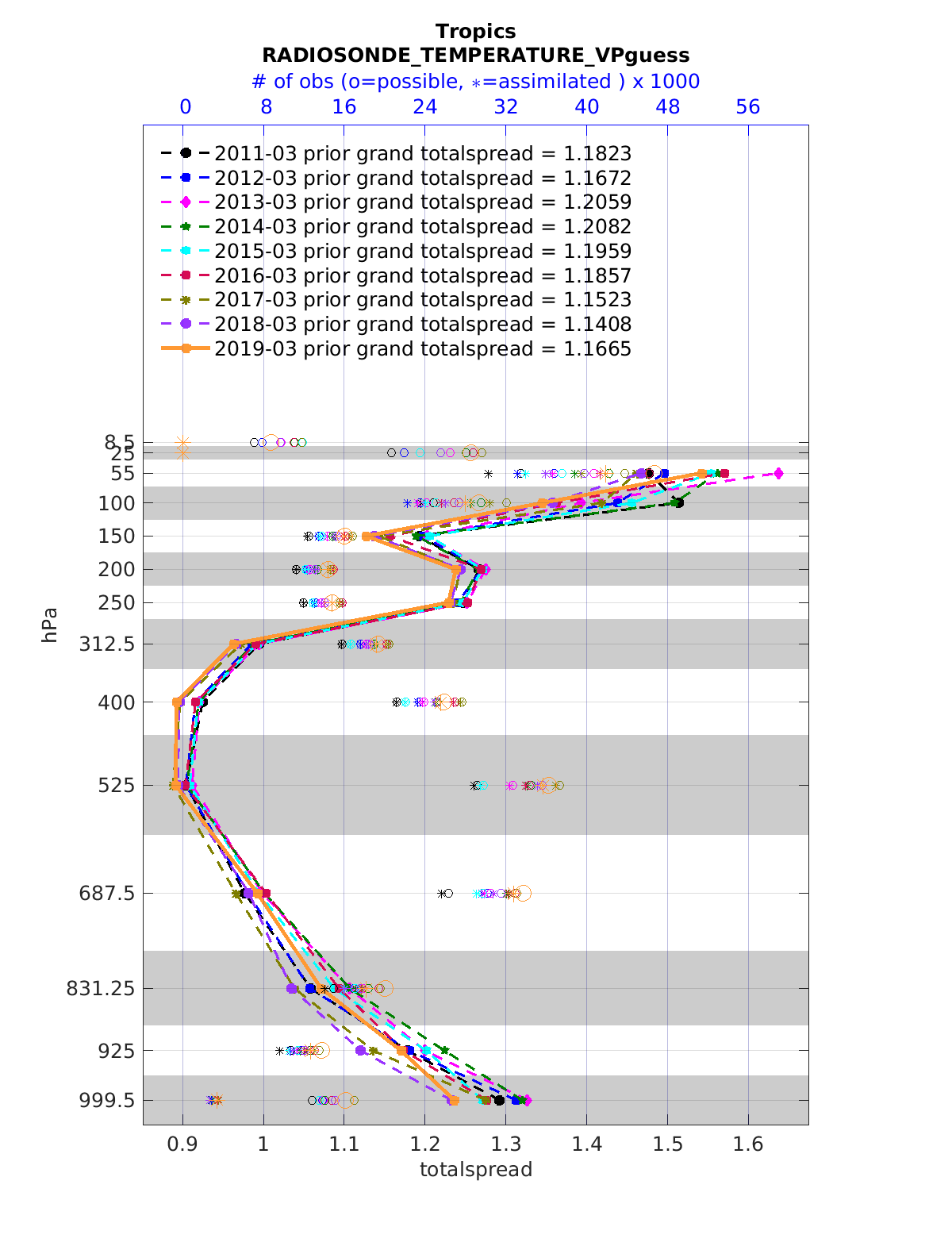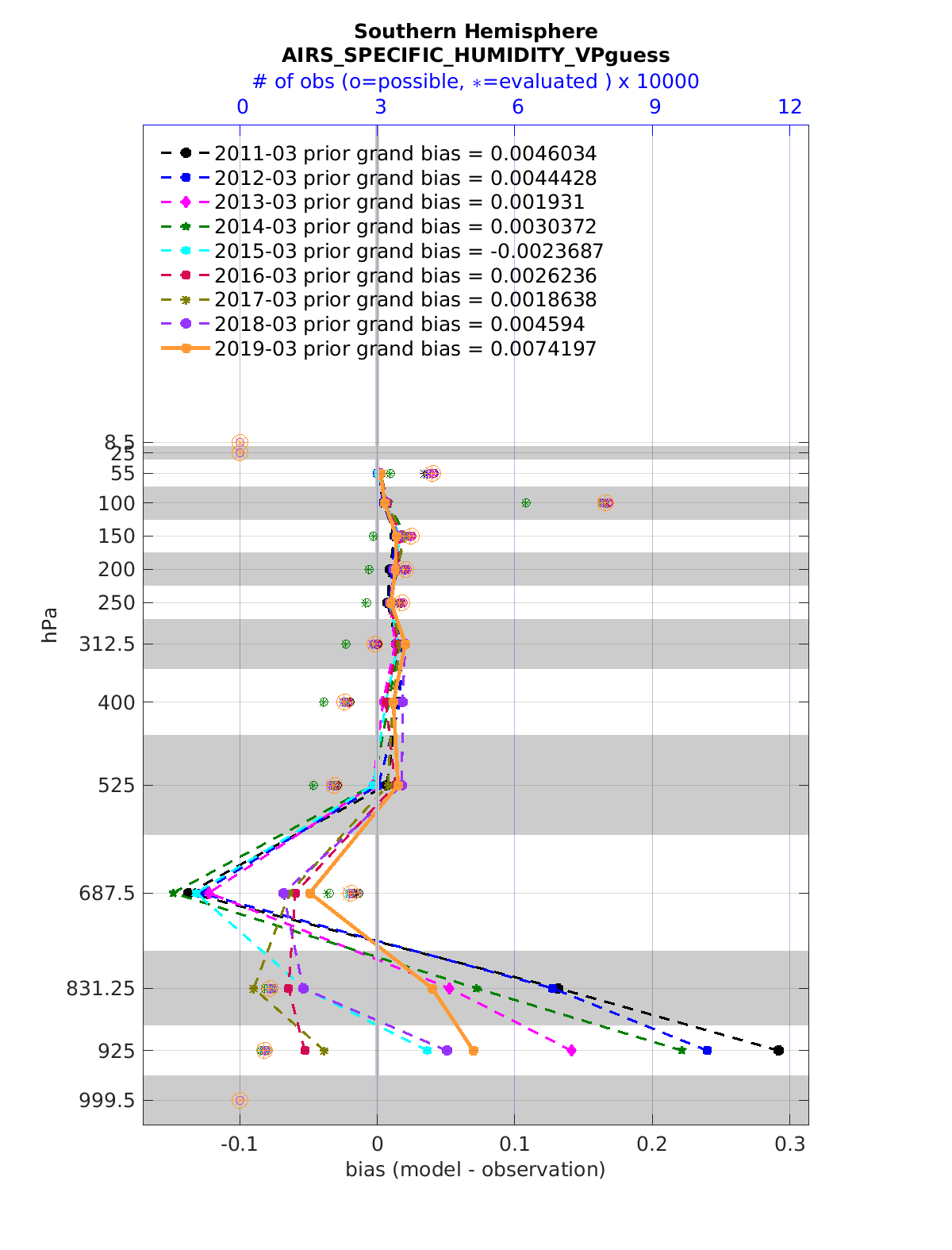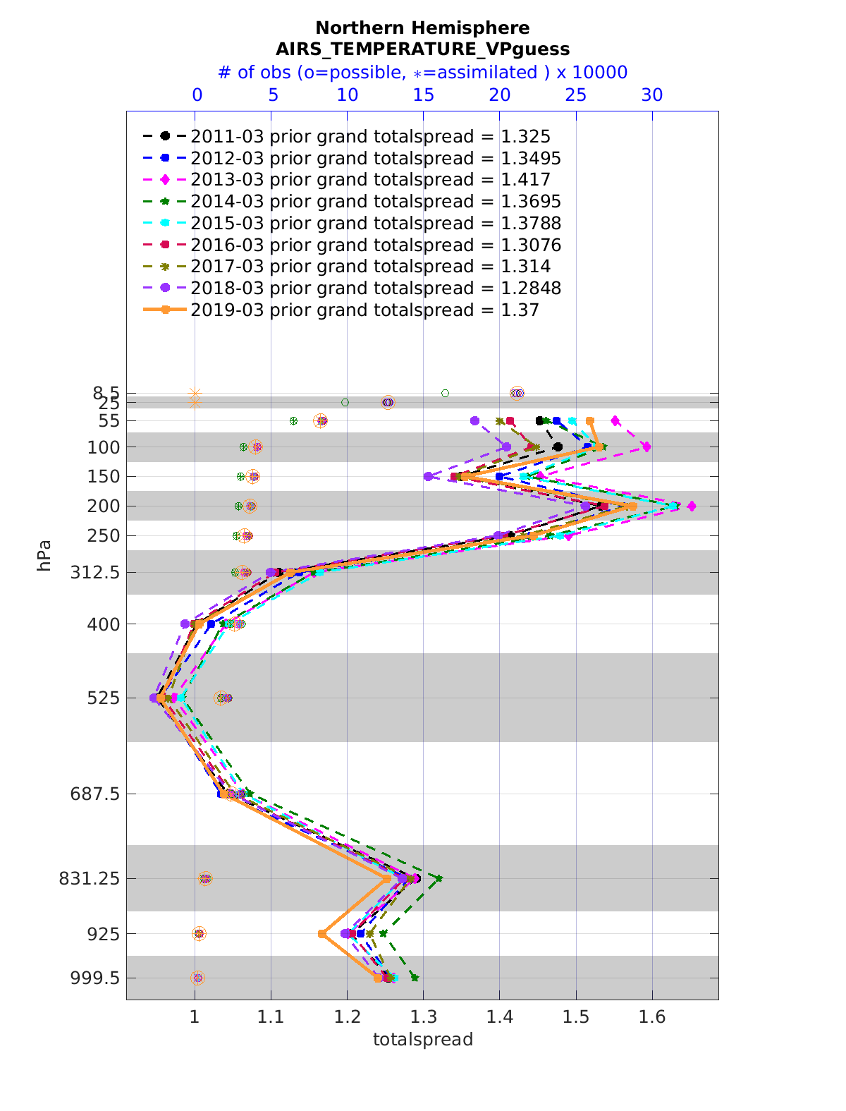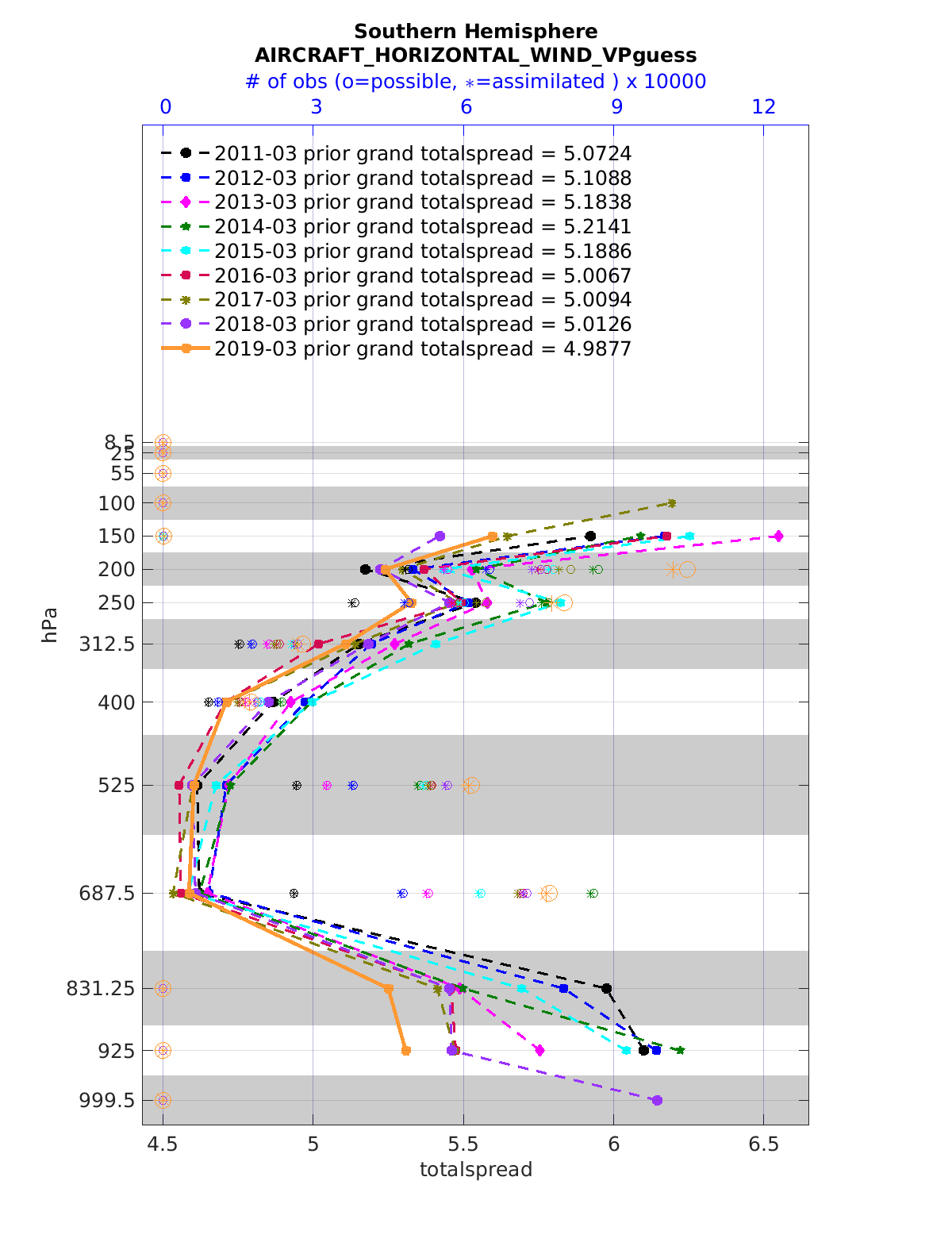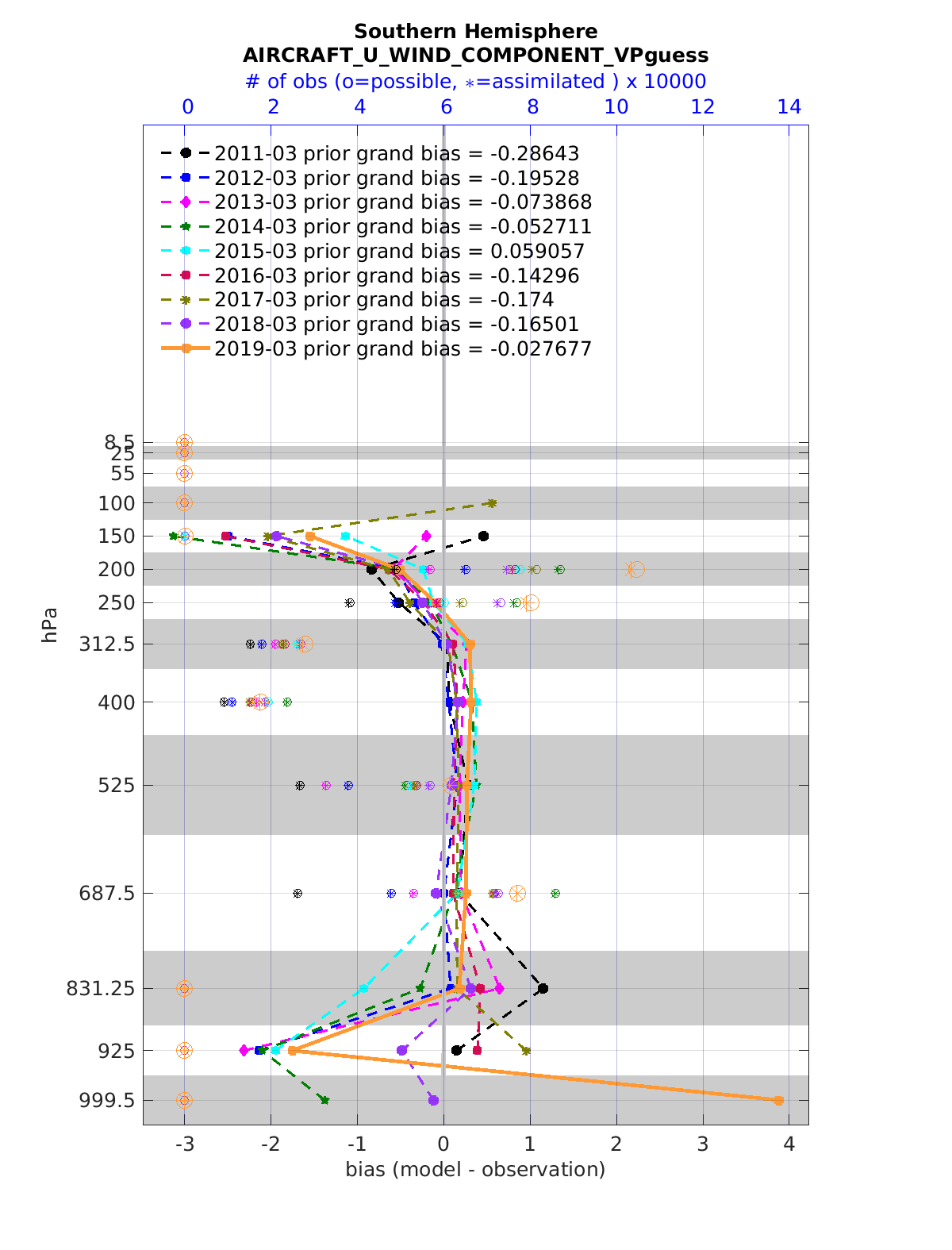Comparison of all March Vertical Profiles for the CESM Reanalysis