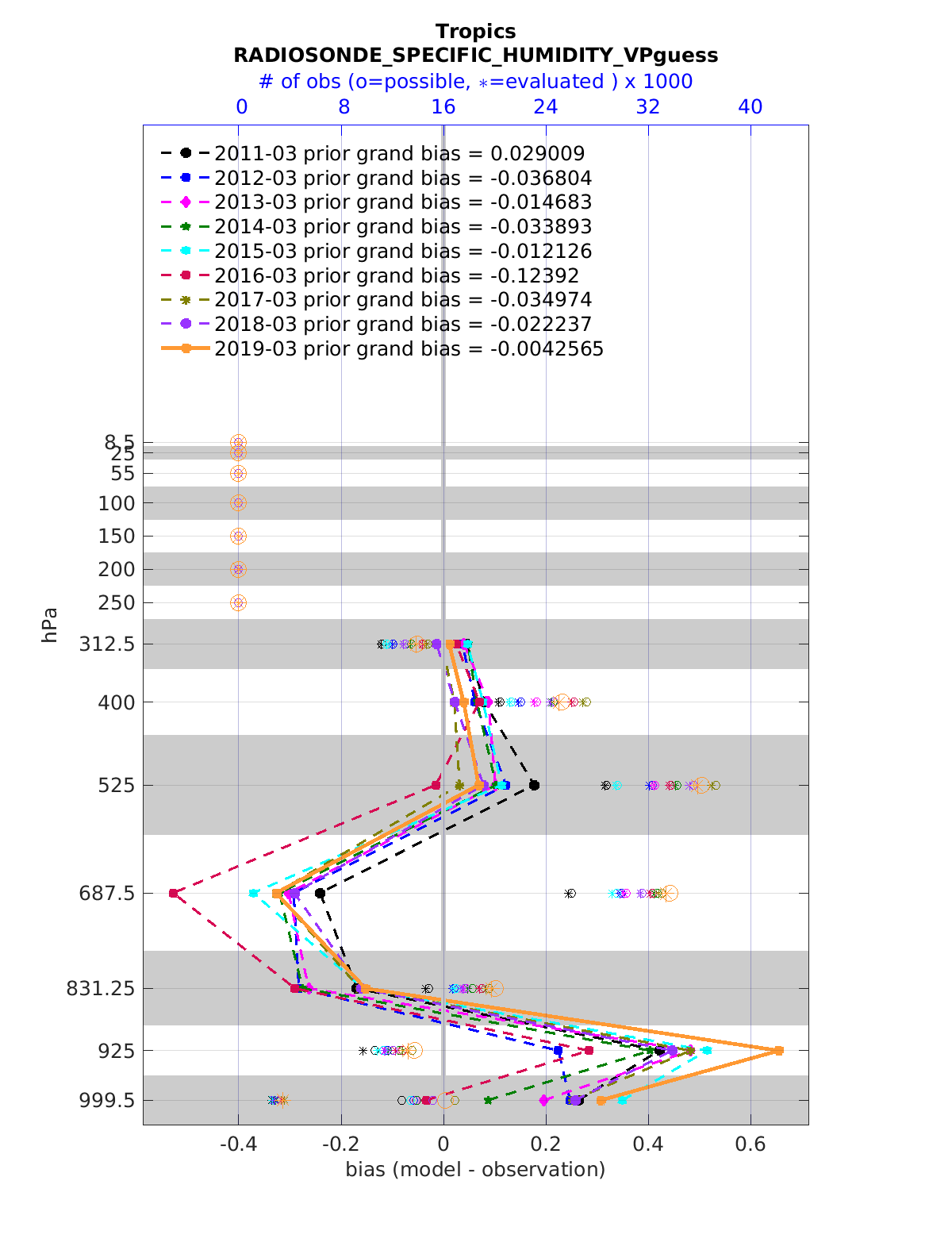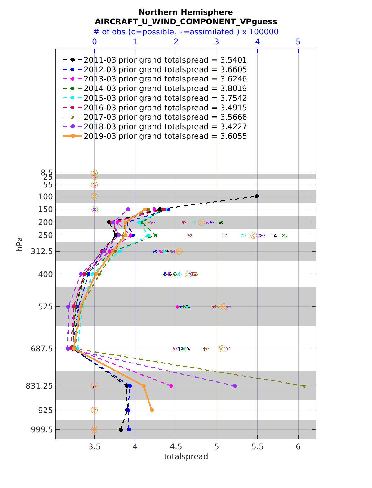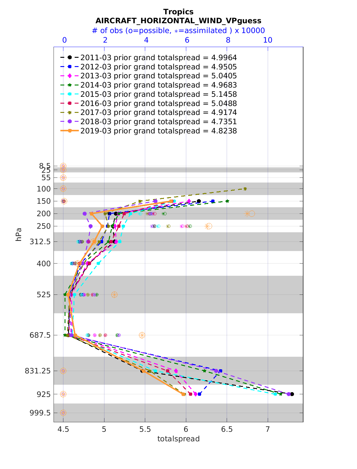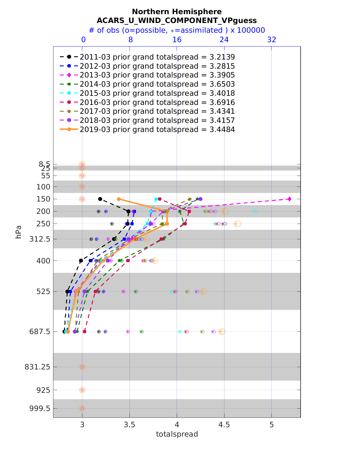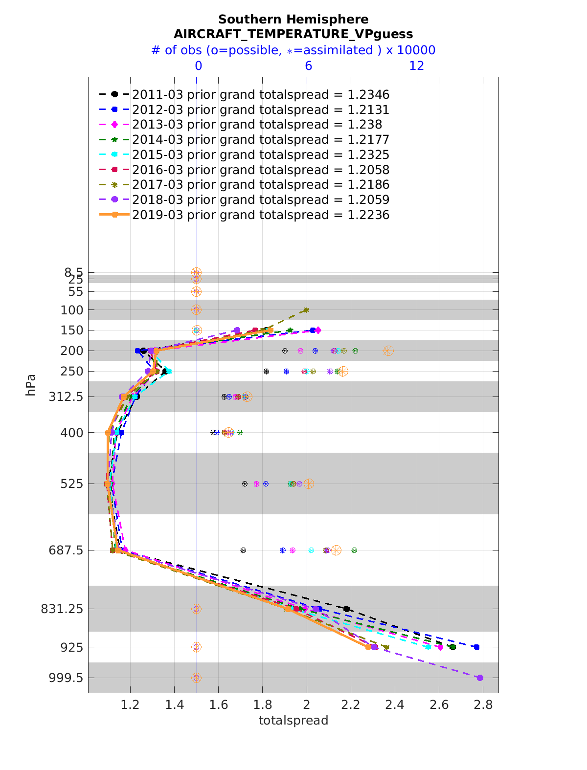 Comparison of all March Vertical Profiles for the CESM Reanalysis