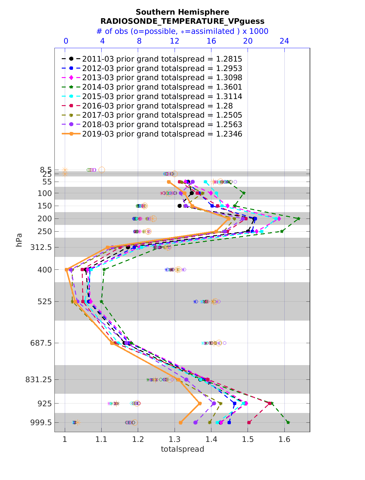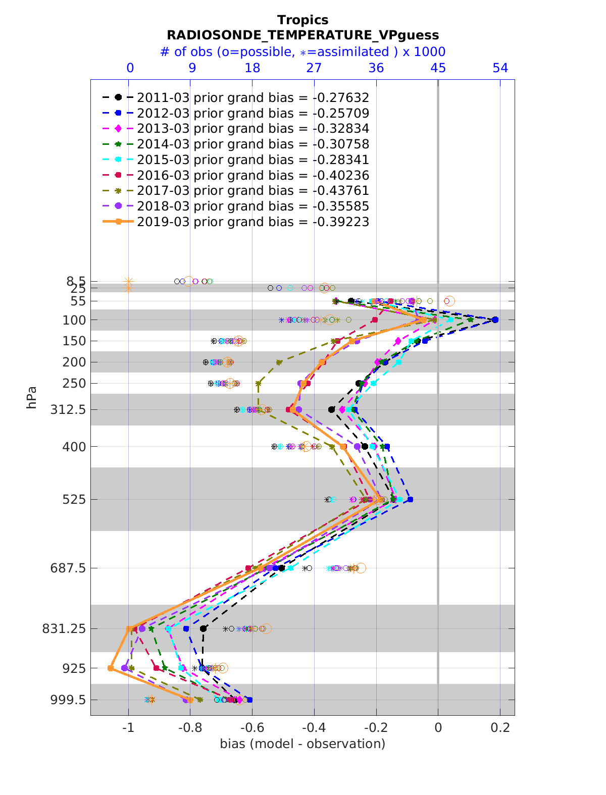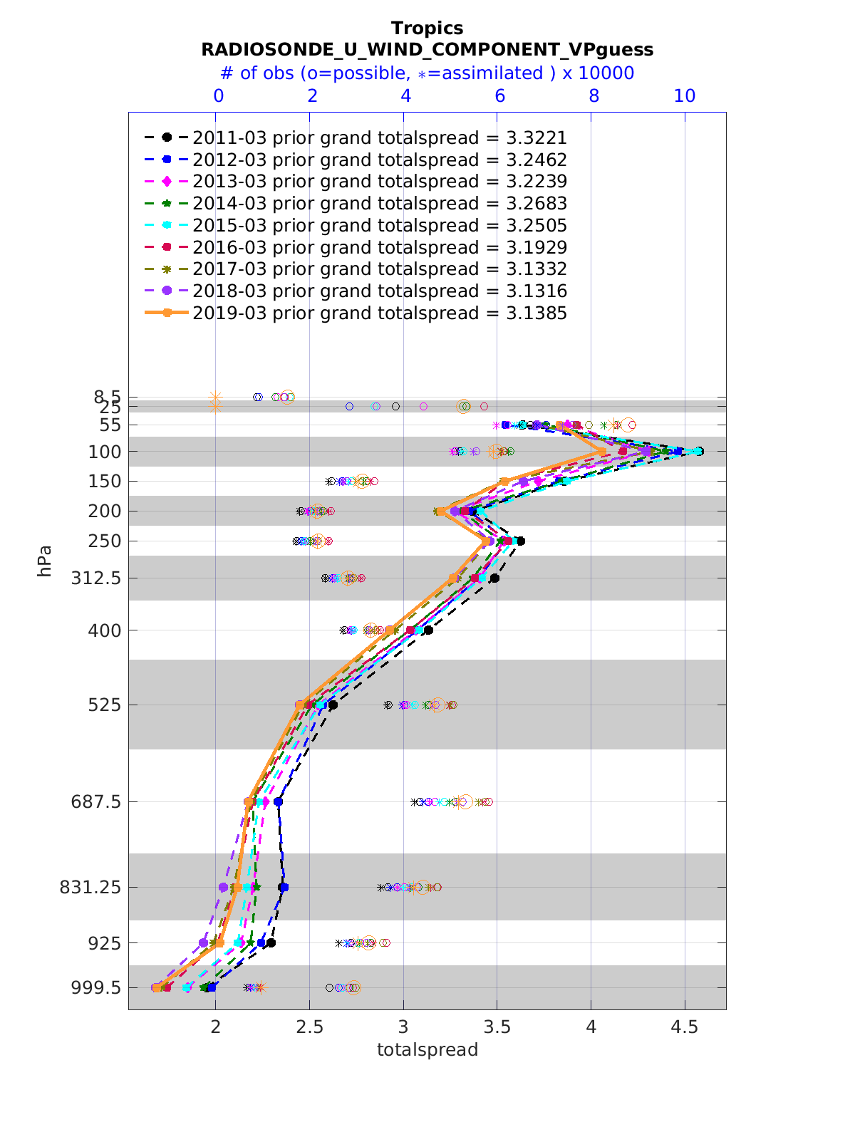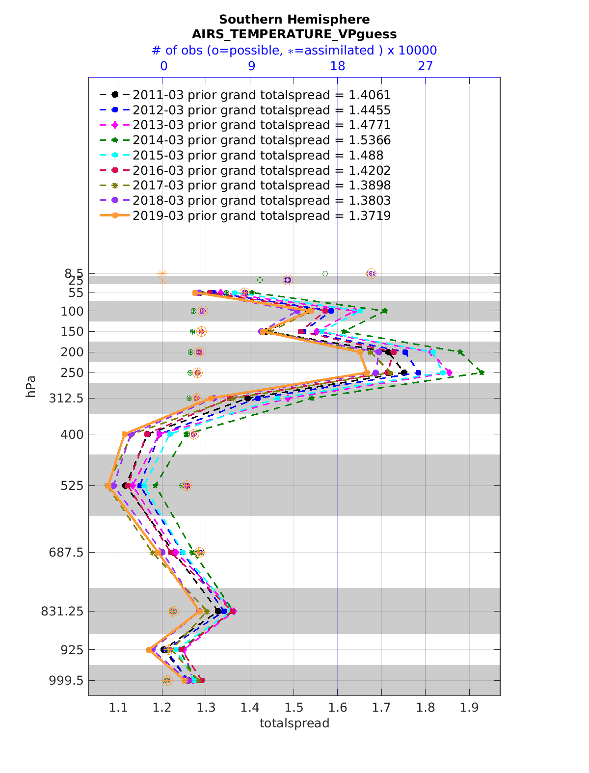 Comparison of all March Vertical Profiles for the CESM Reanalysis