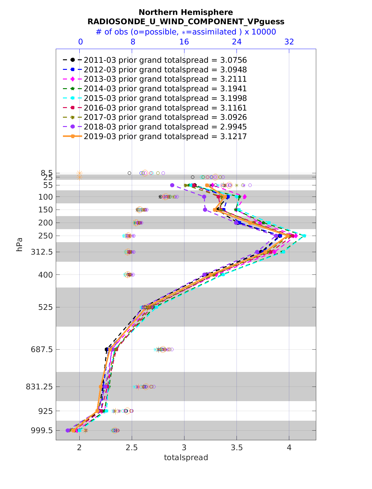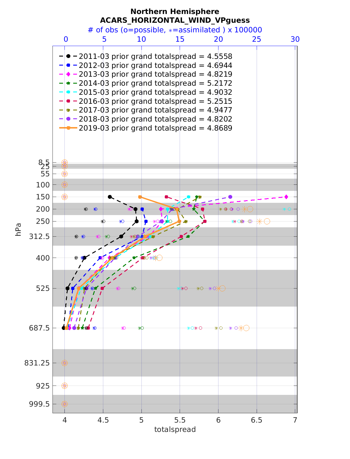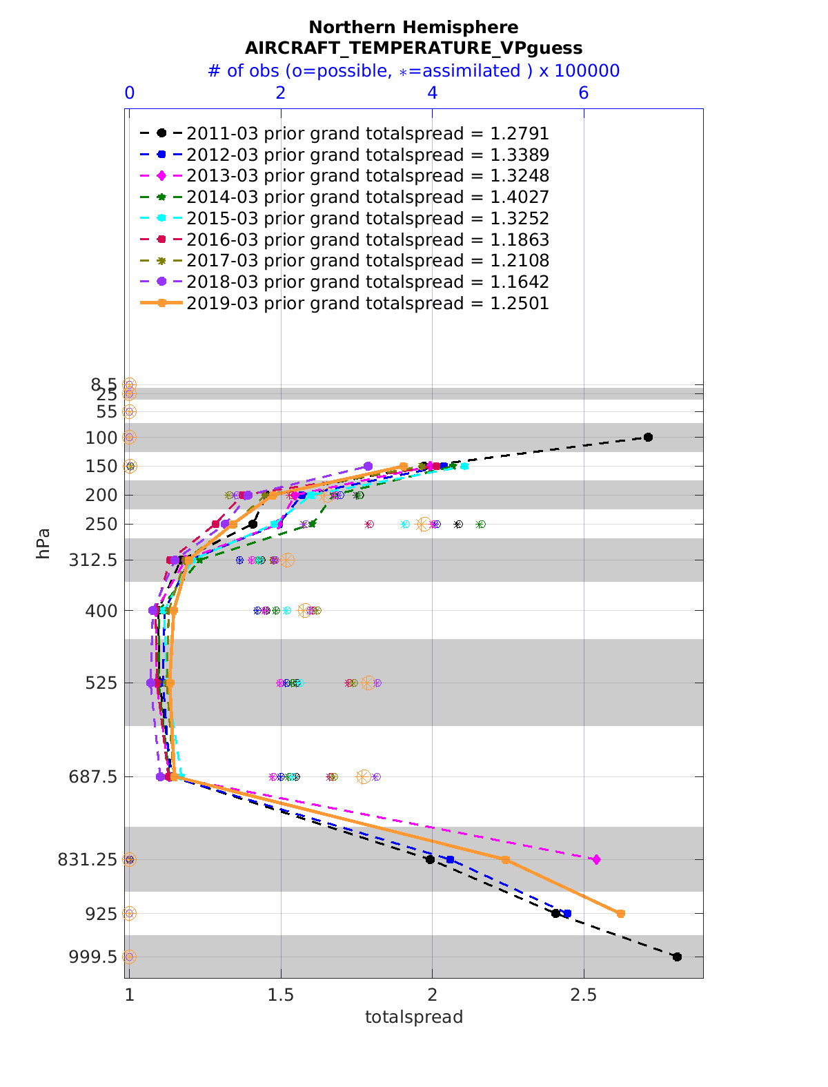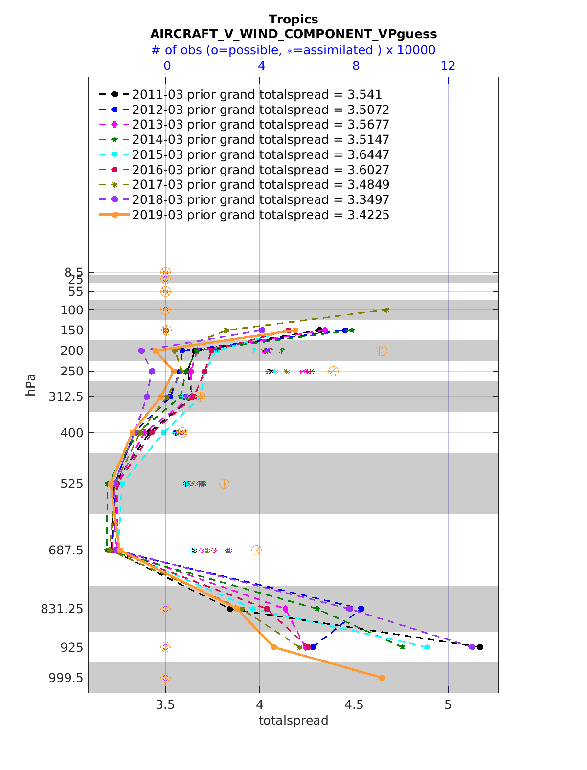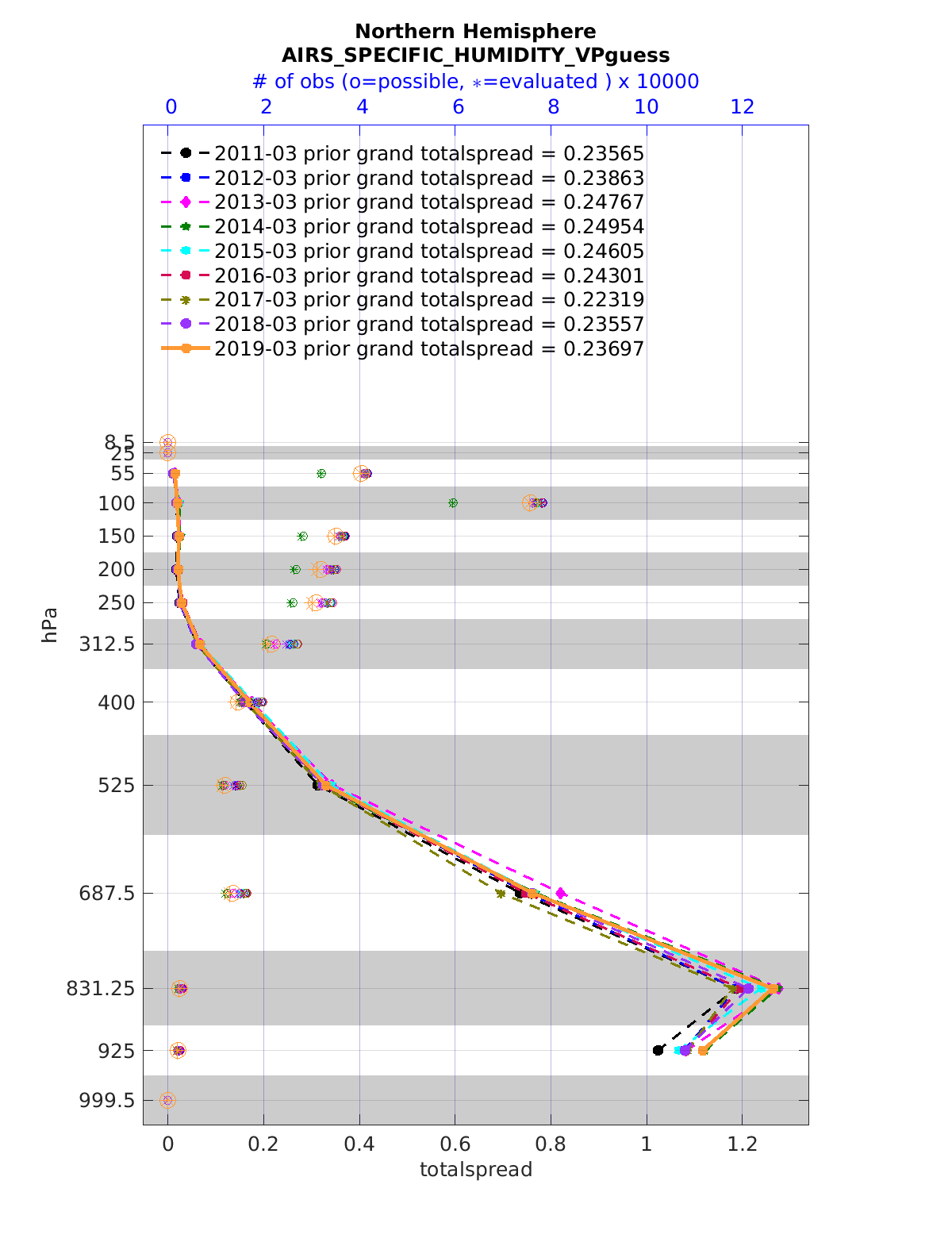 Comparison of all March Vertical Profiles for the CESM Reanalysis