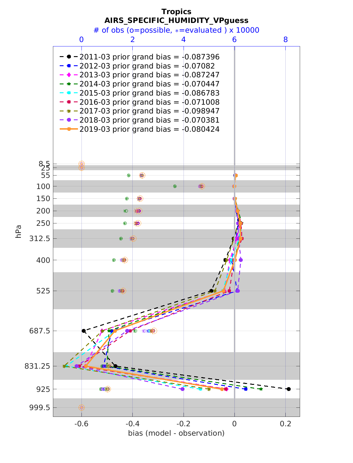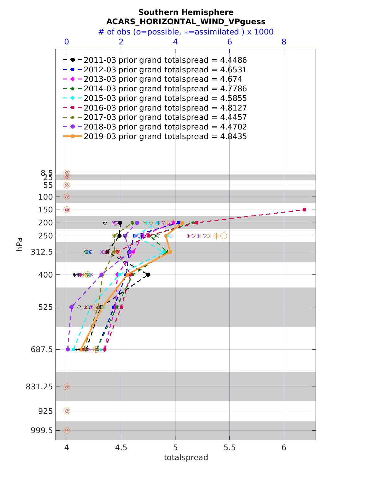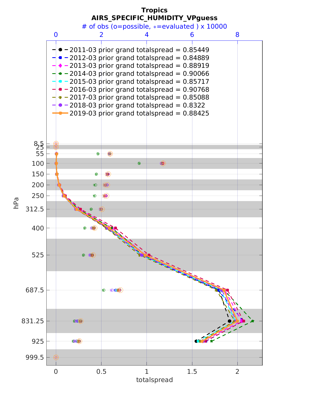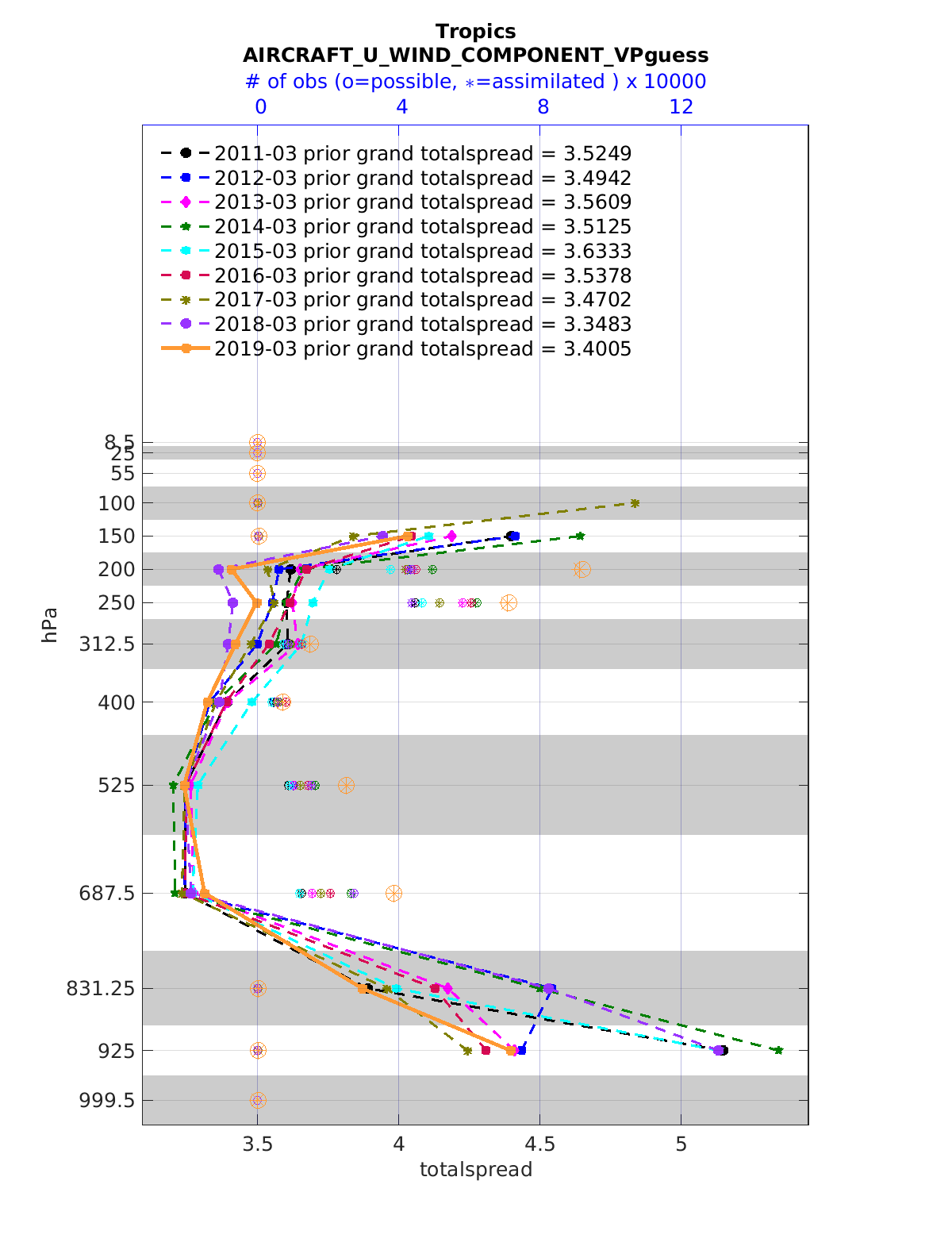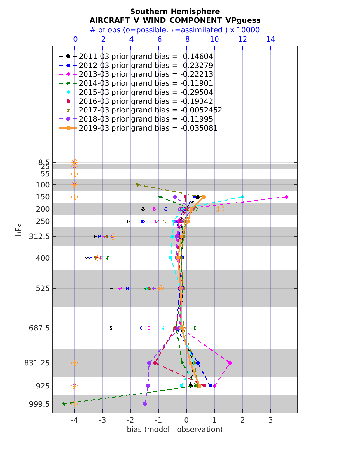 Comparison of all March Vertical Profiles for the CESM Reanalysis