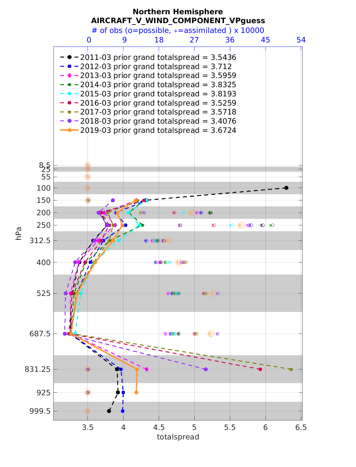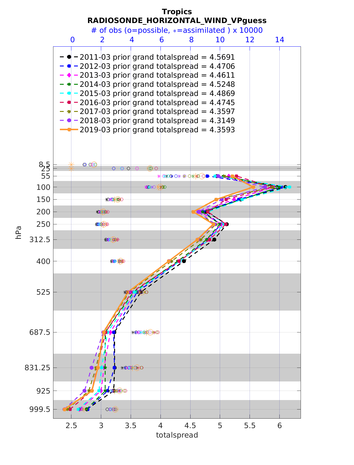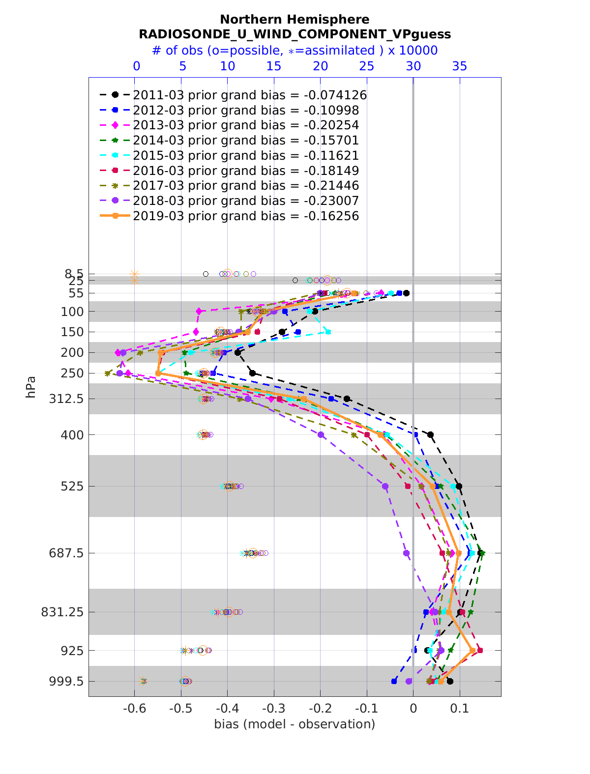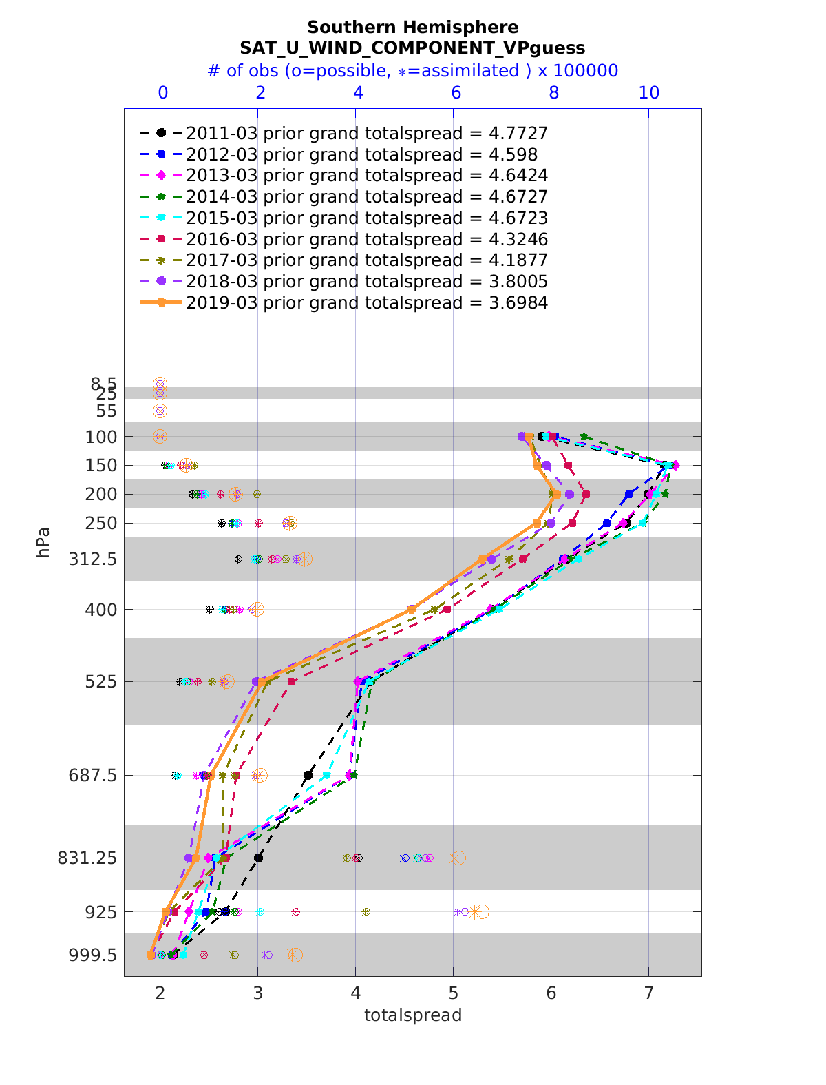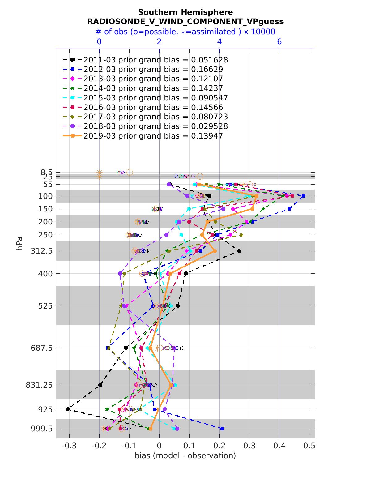 Comparison of all March Vertical Profiles for the CESM Reanalysis