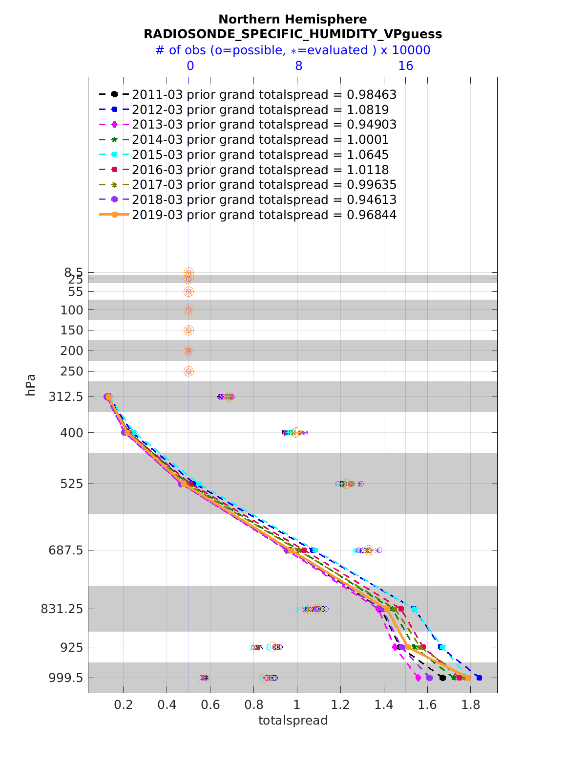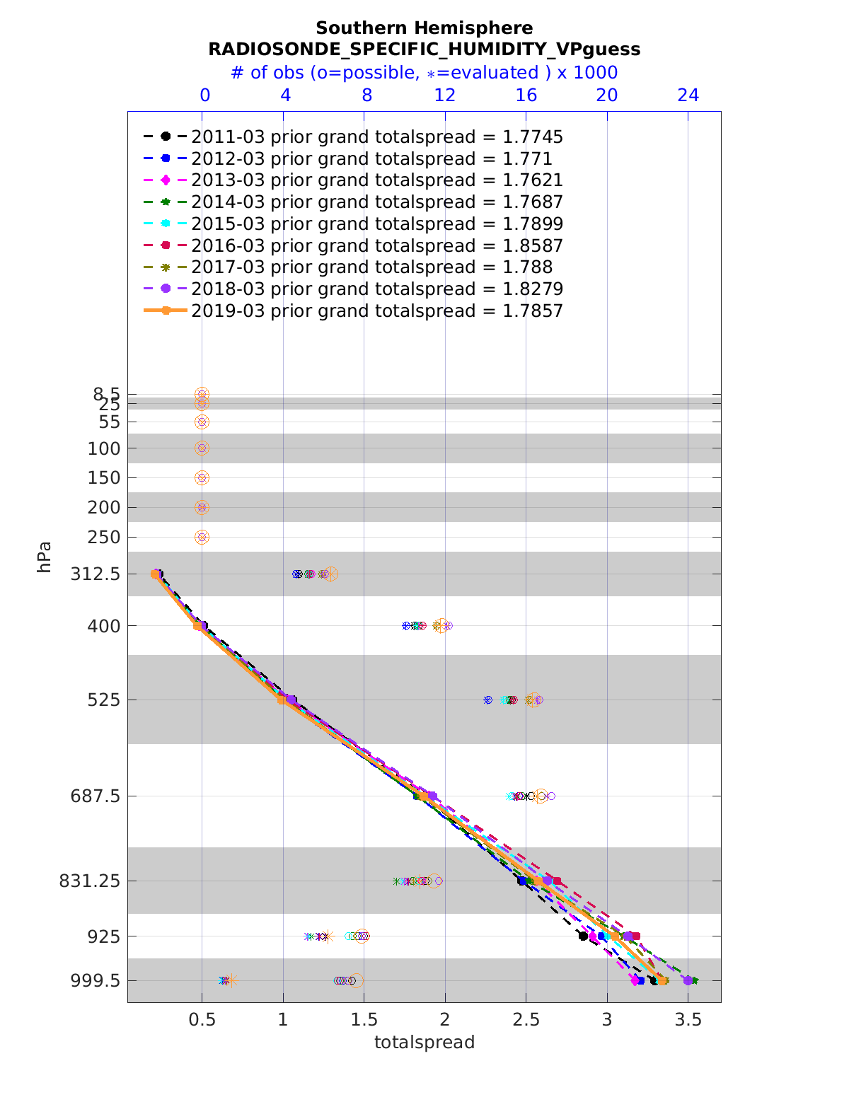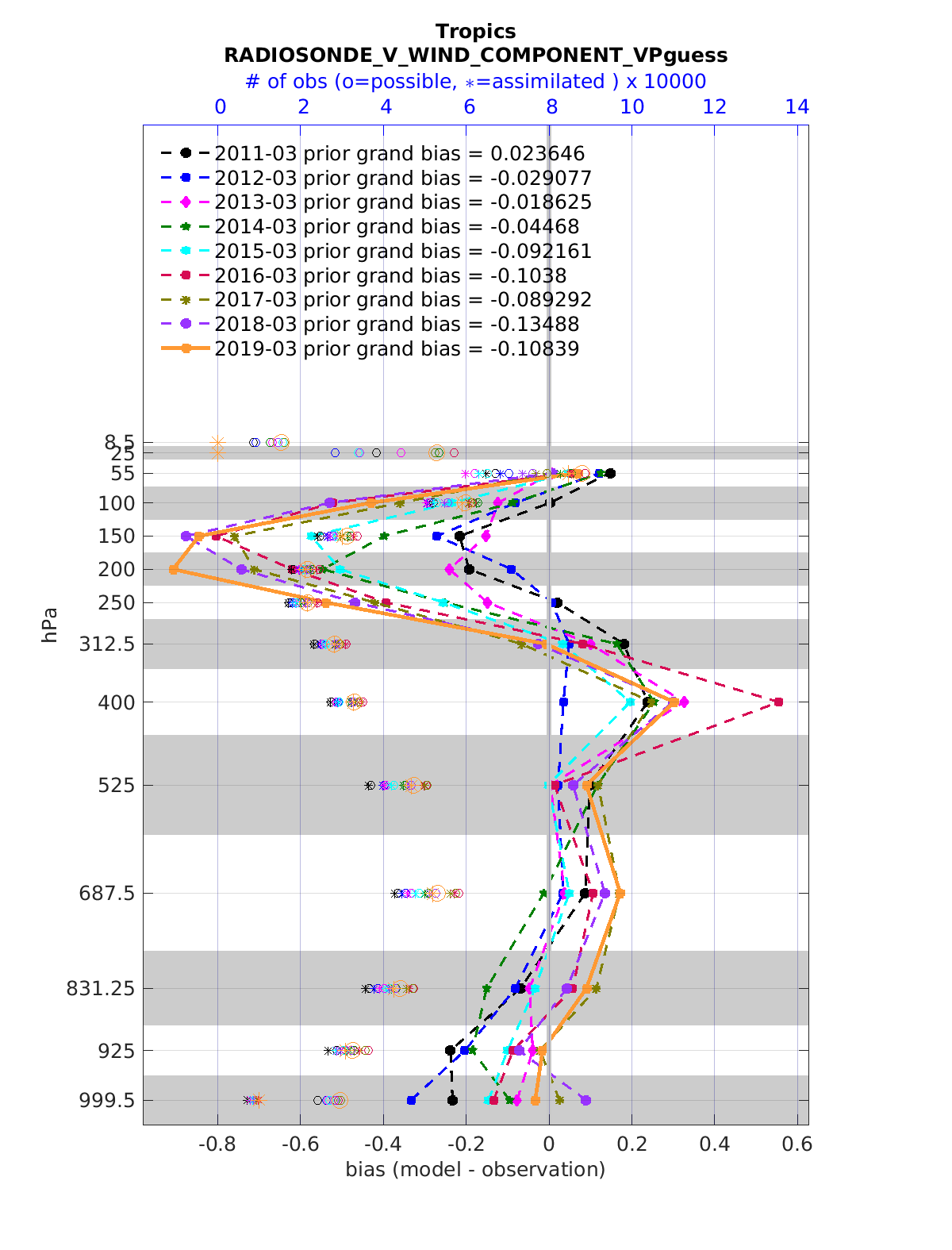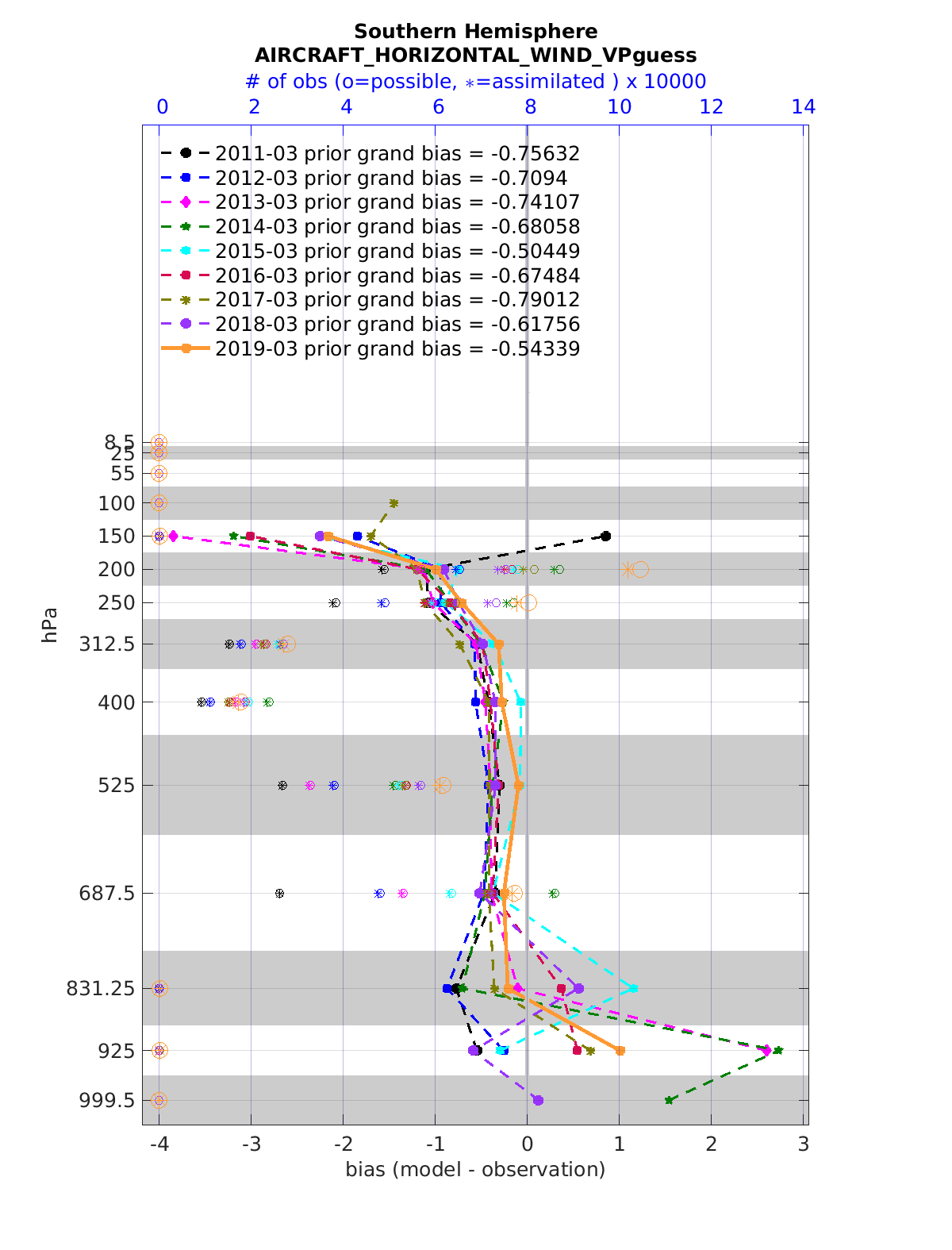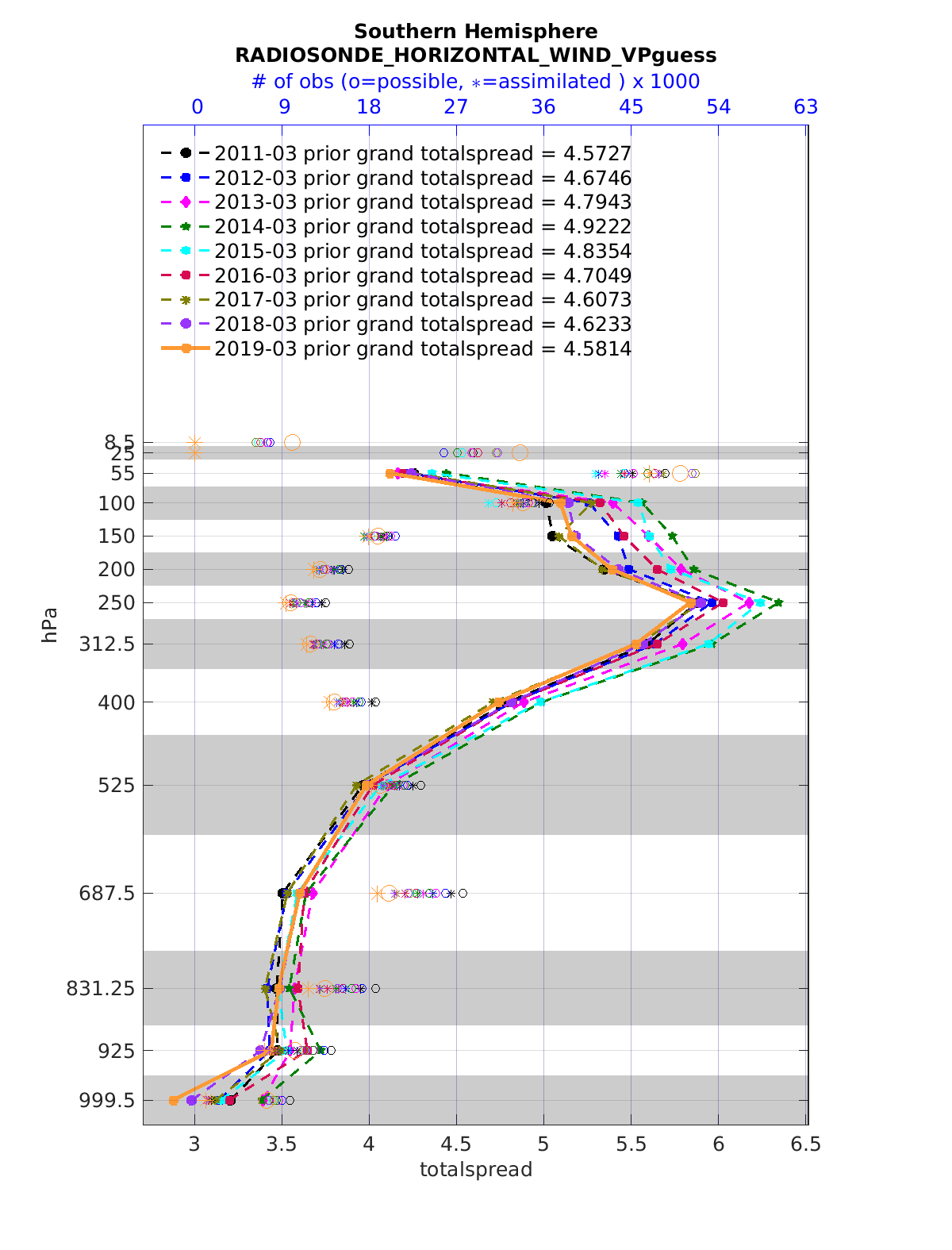 Comparison of all March Vertical Profiles for the CESM Reanalysis