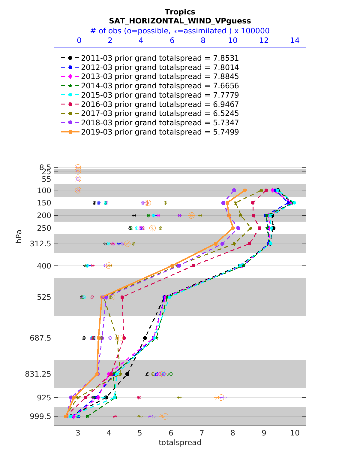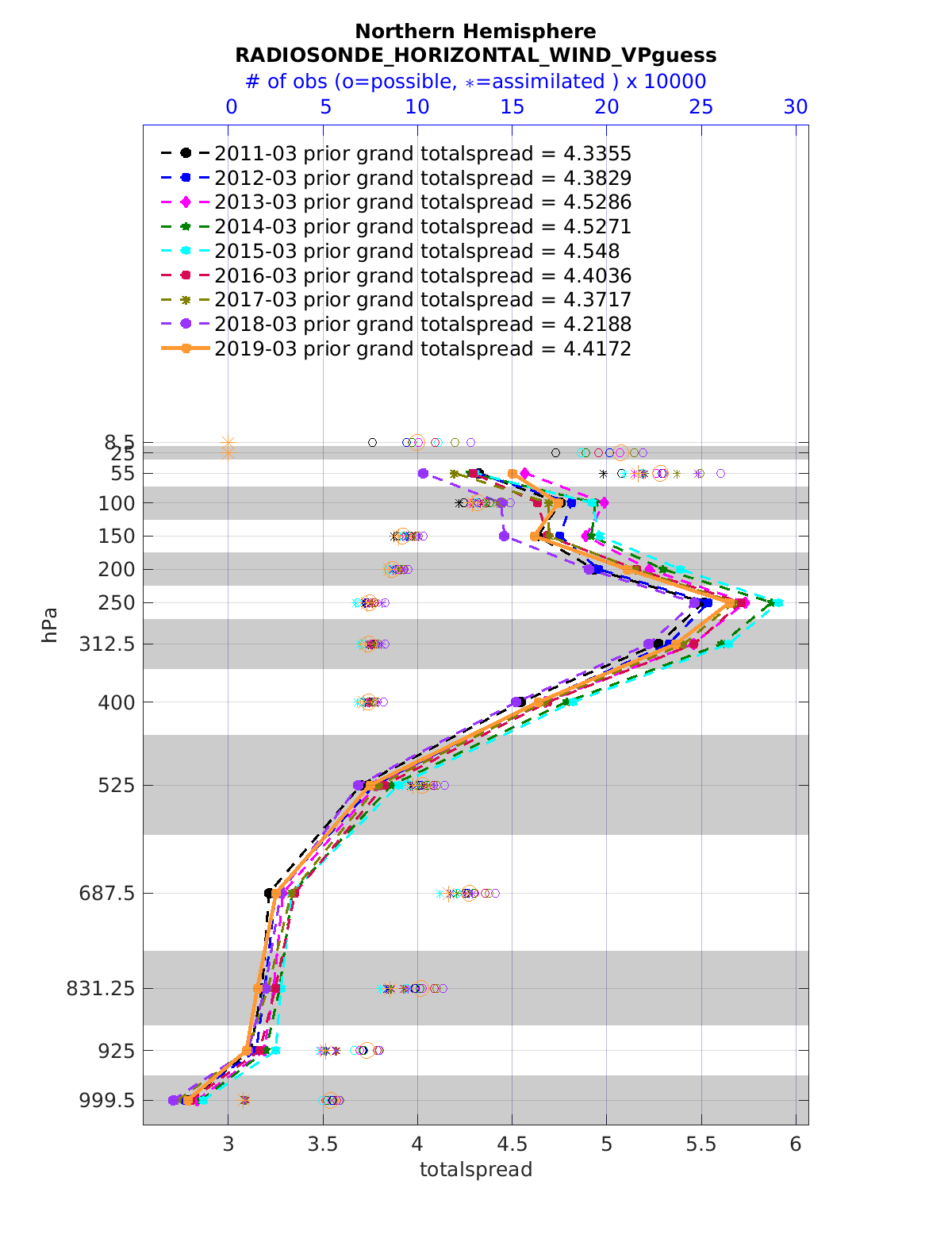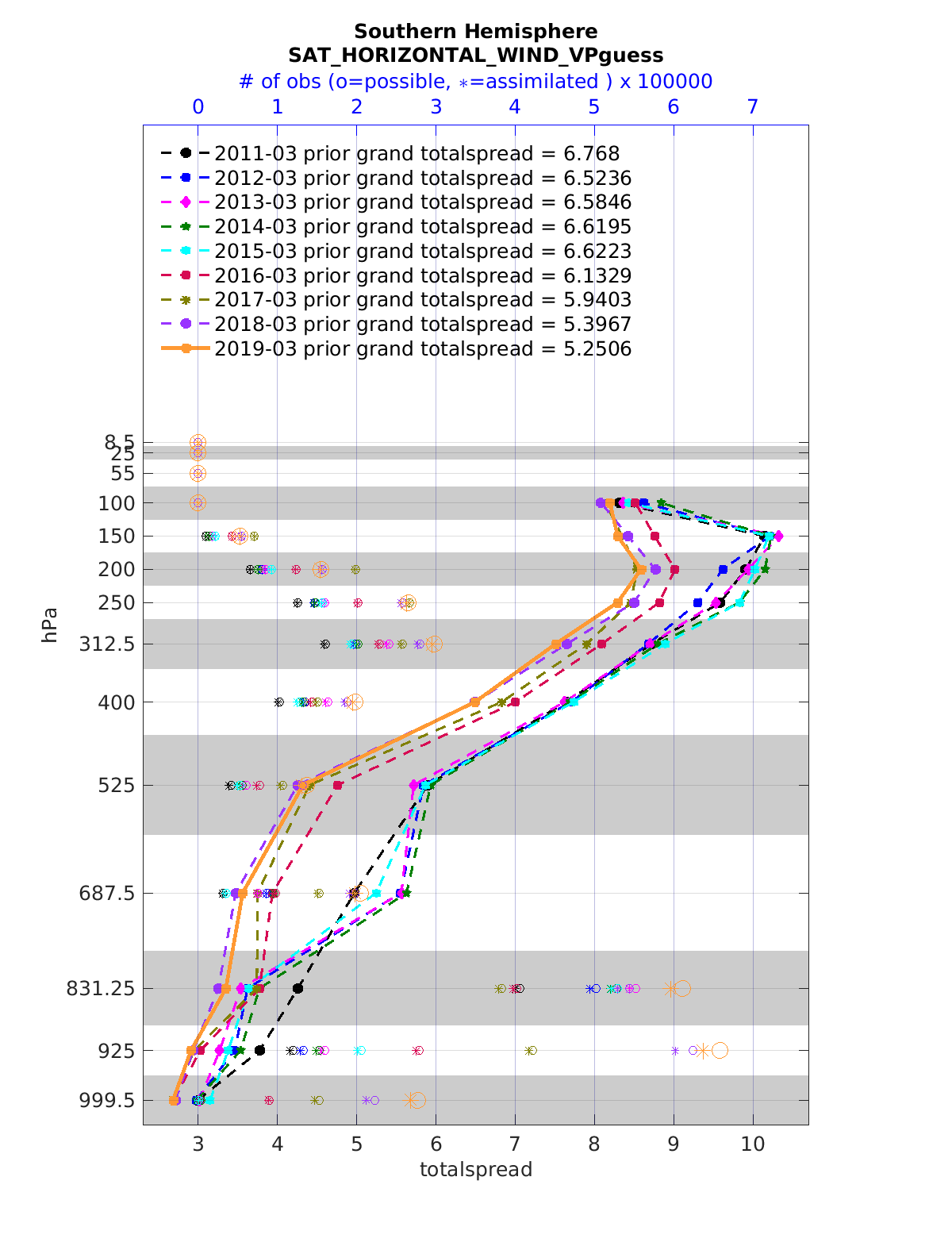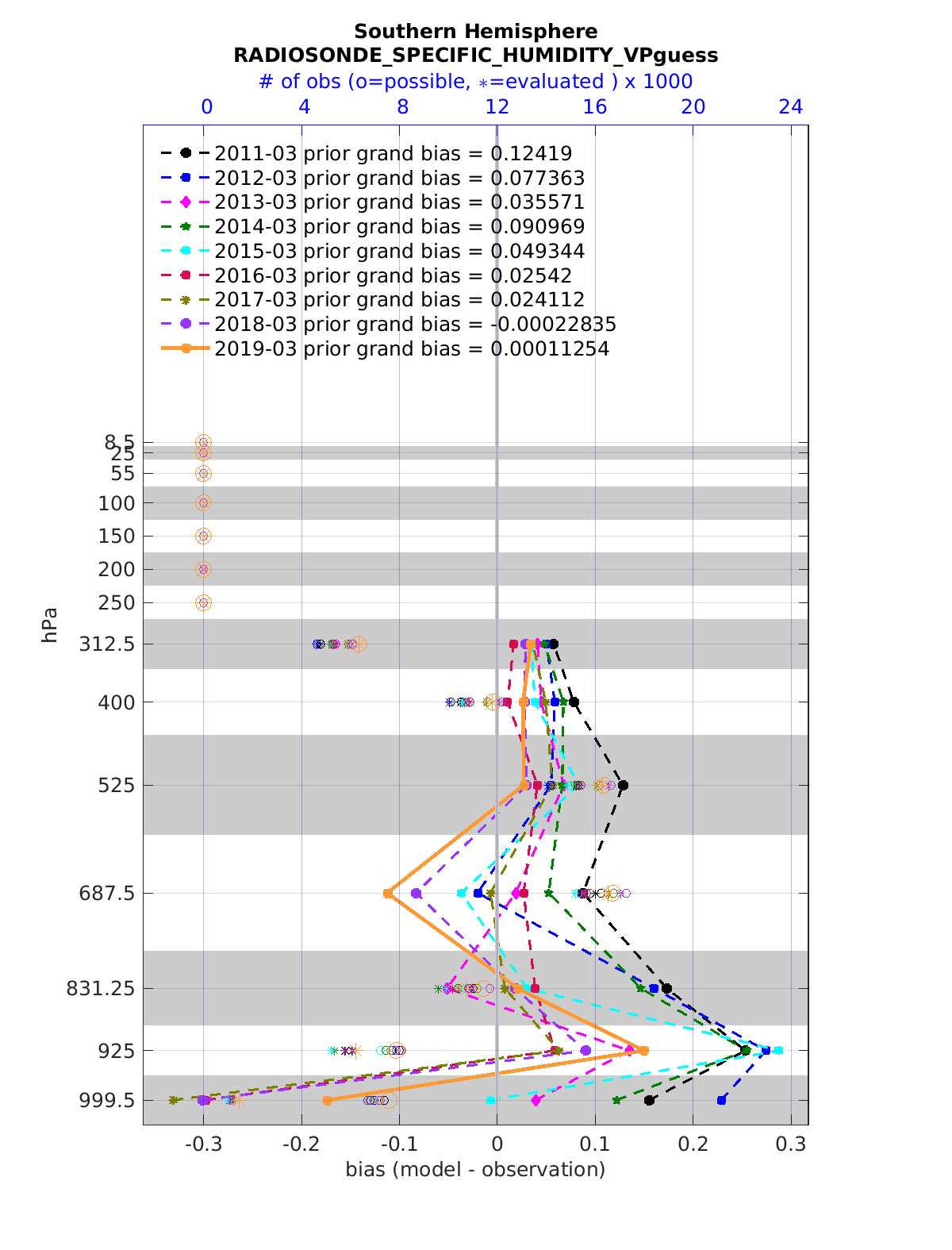 Comparison of all March Vertical Profiles for the CESM Reanalysis