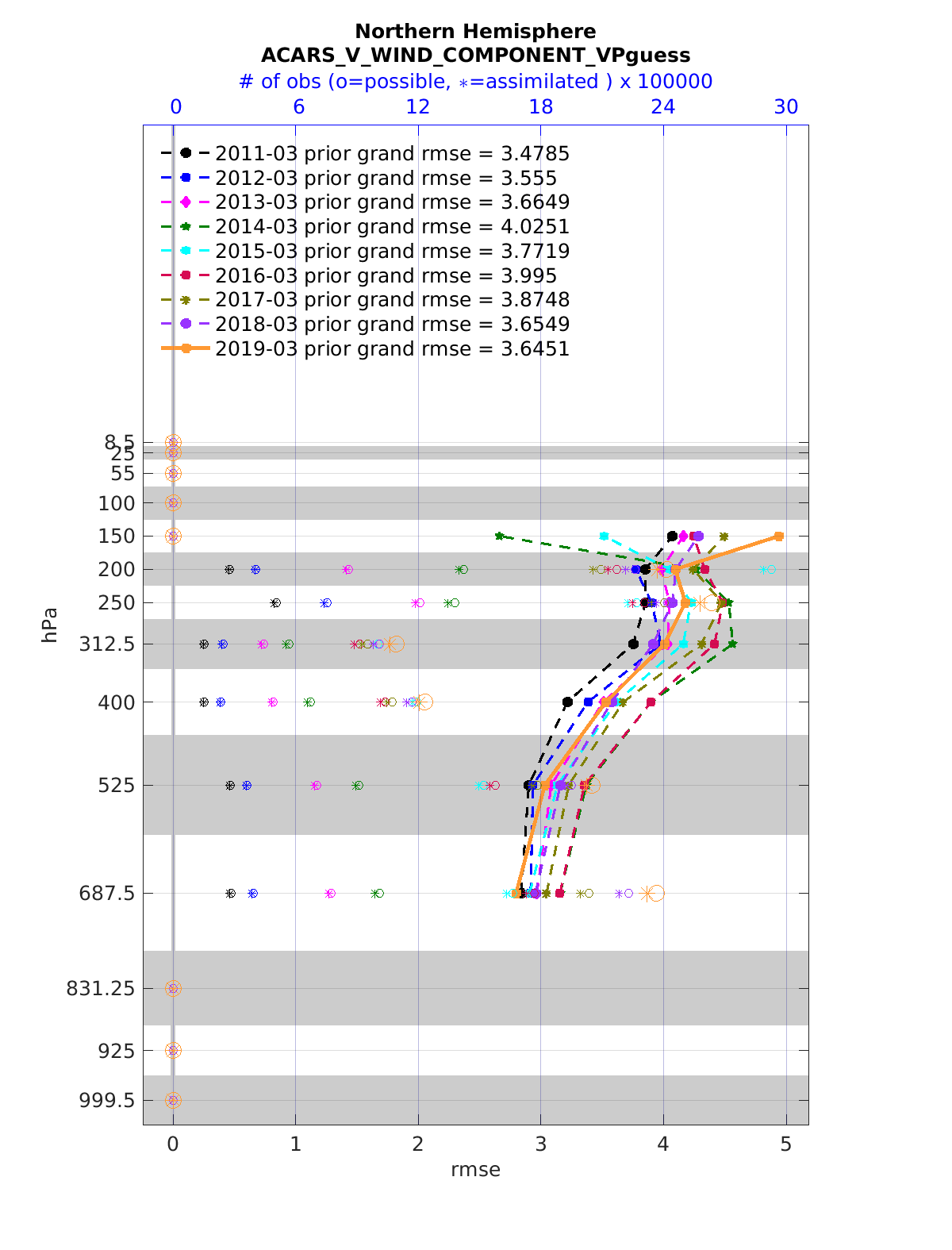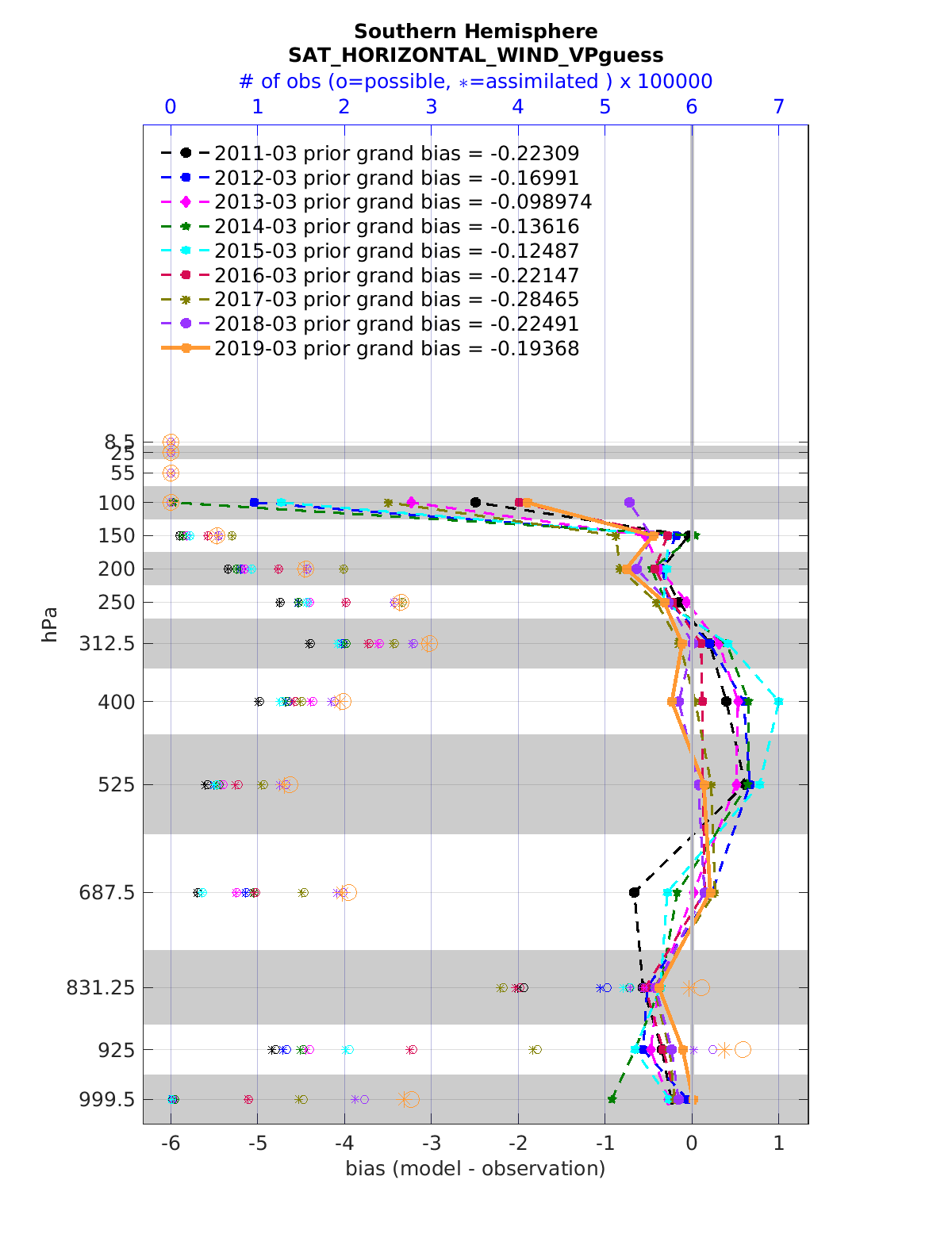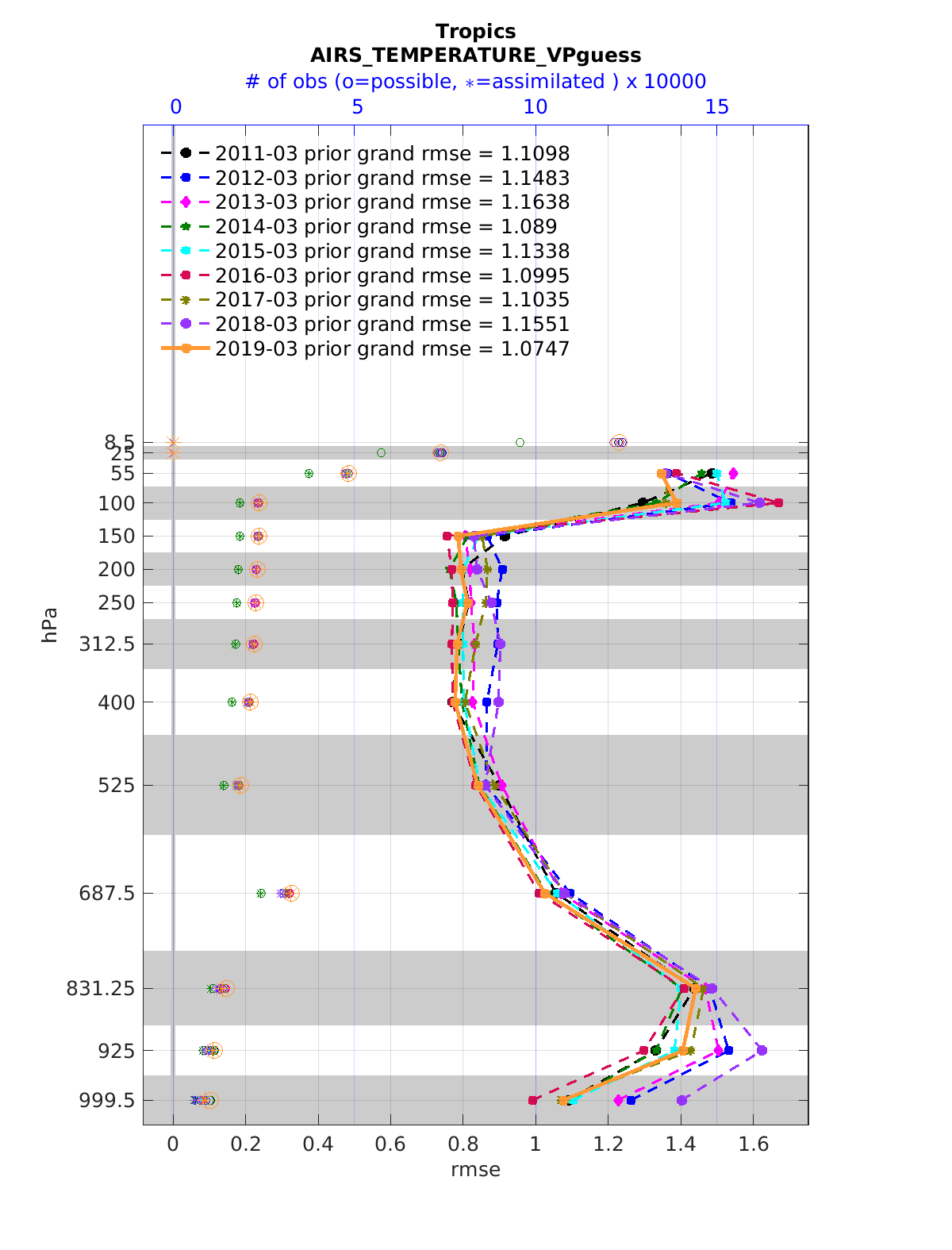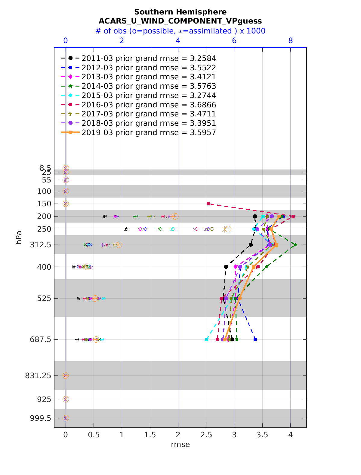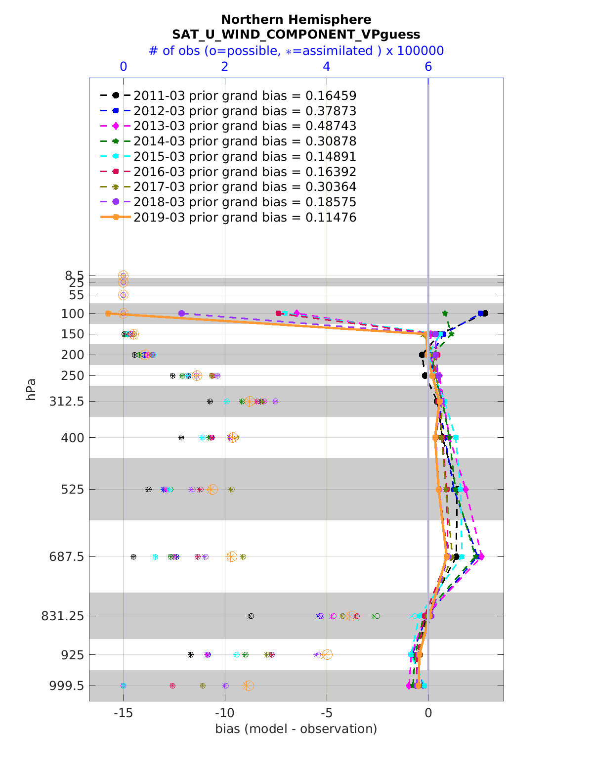 Comparison of all March Vertical Profiles for the CESM Reanalysis
