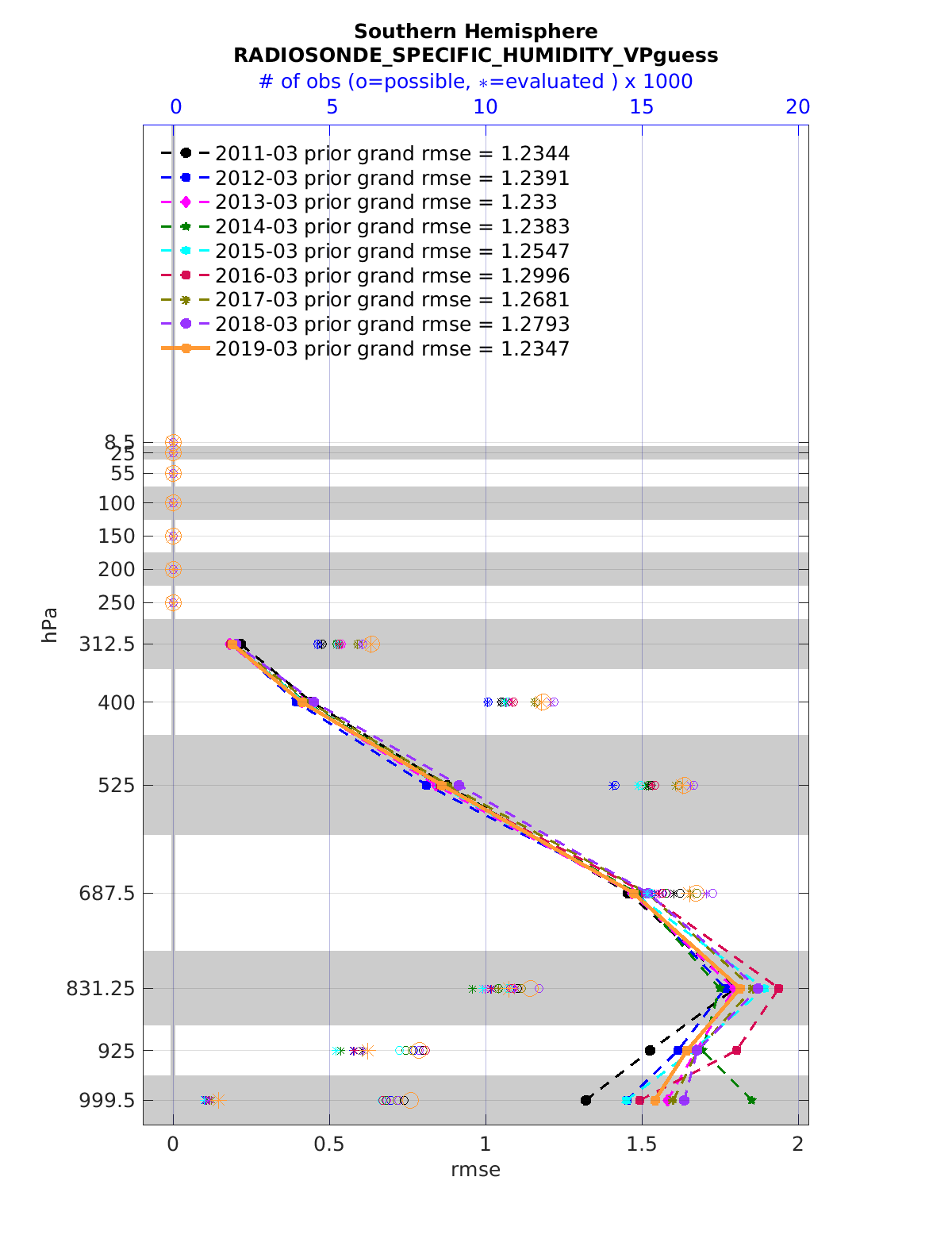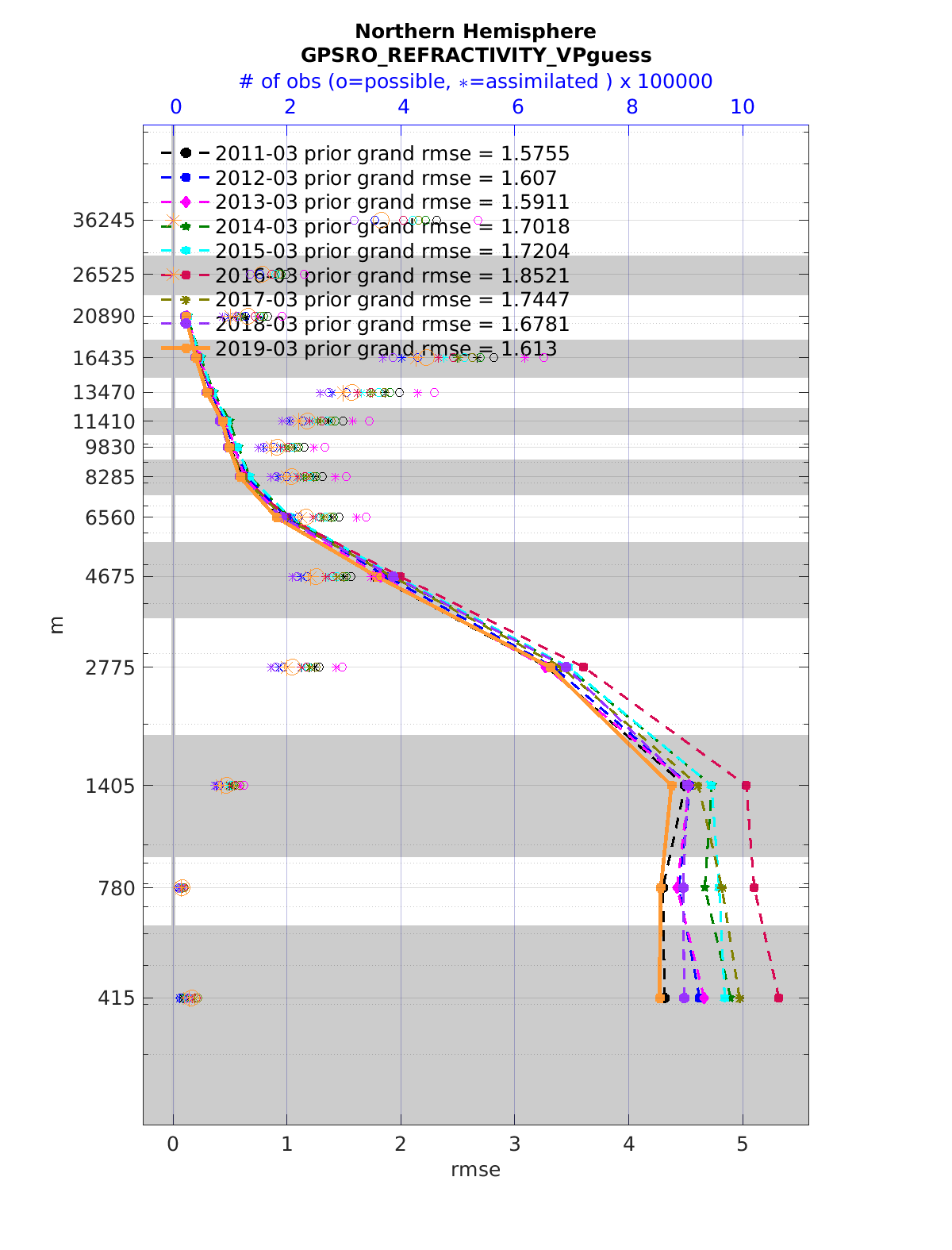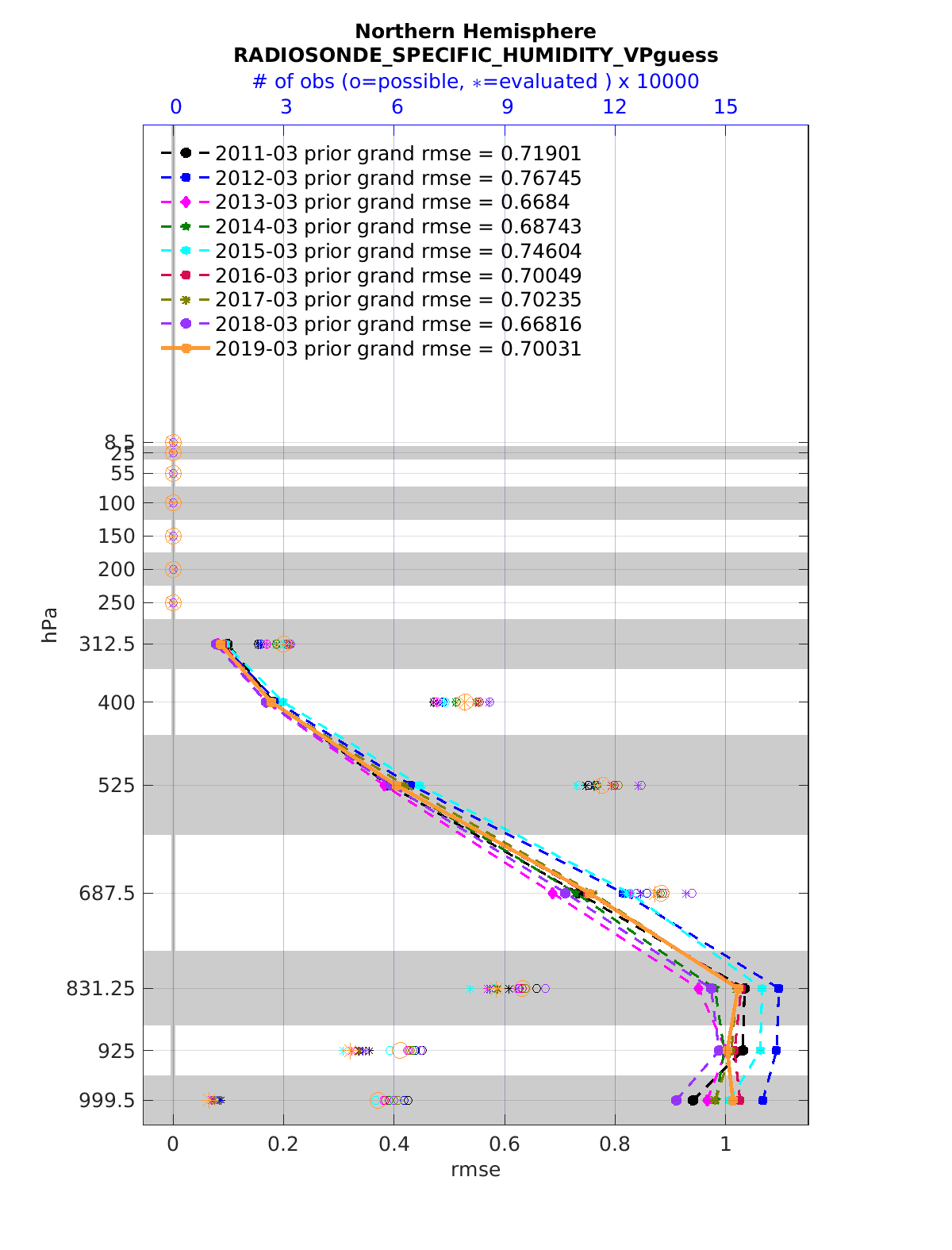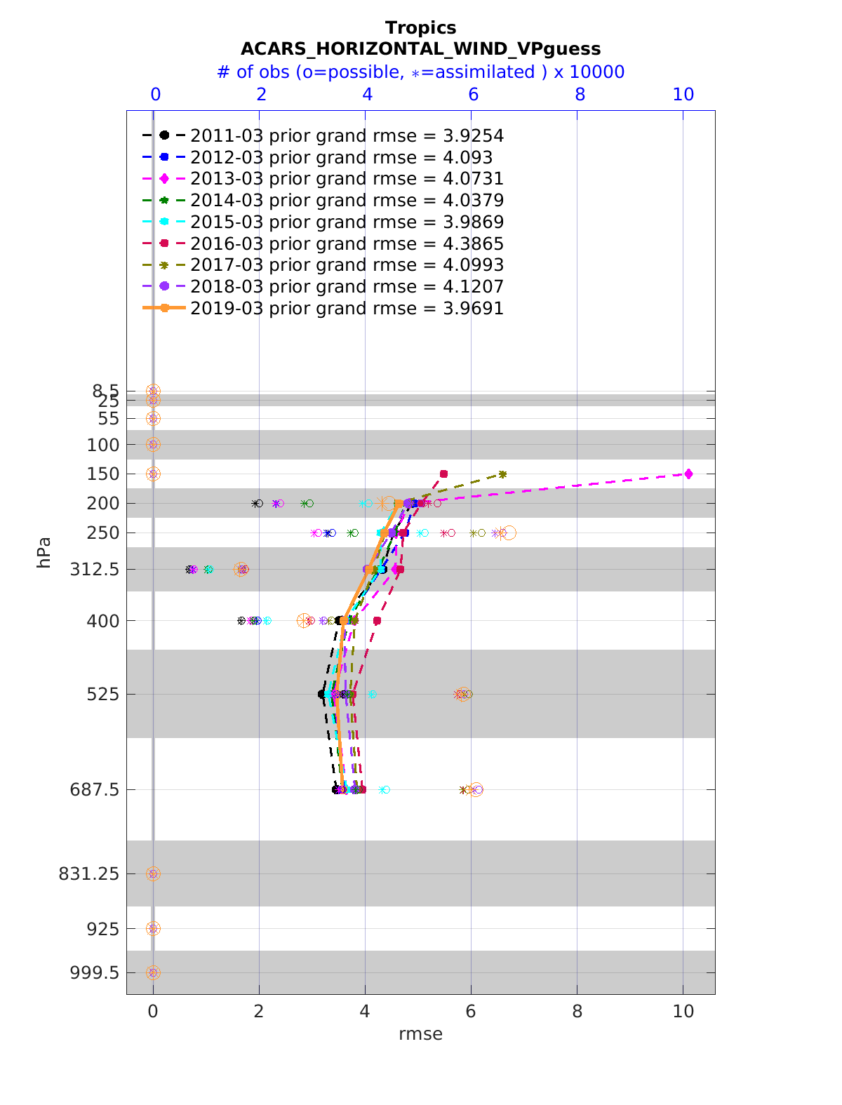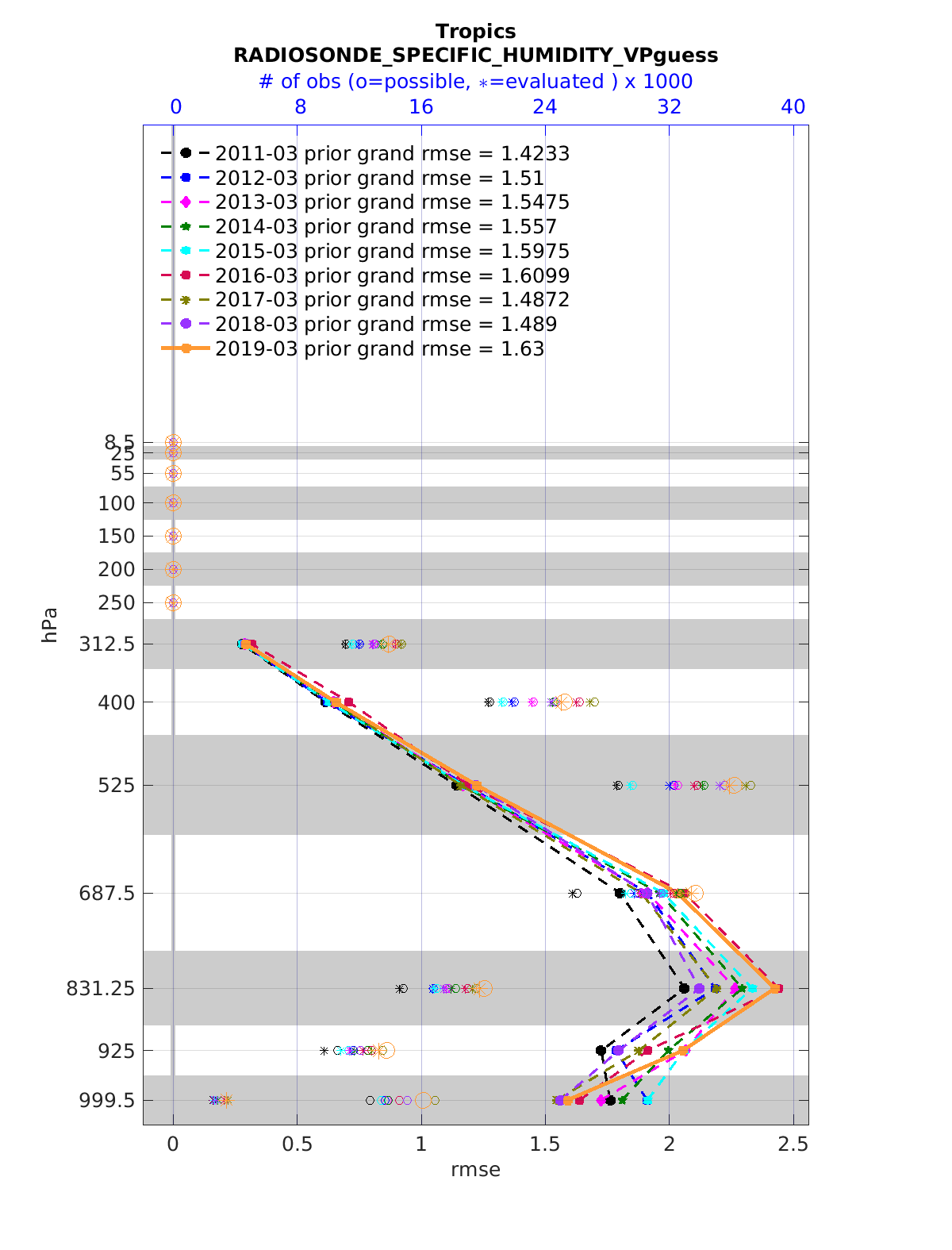 Comparison of all March Vertical Profiles for the CESM Reanalysis