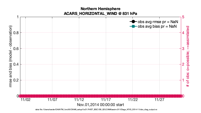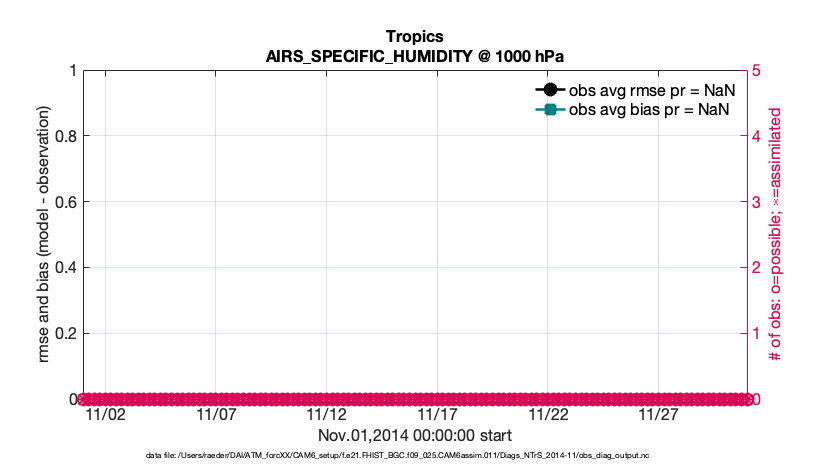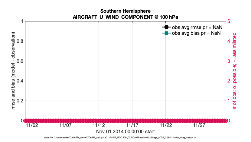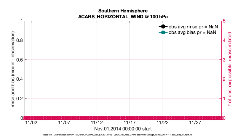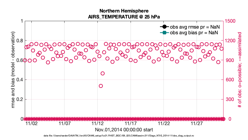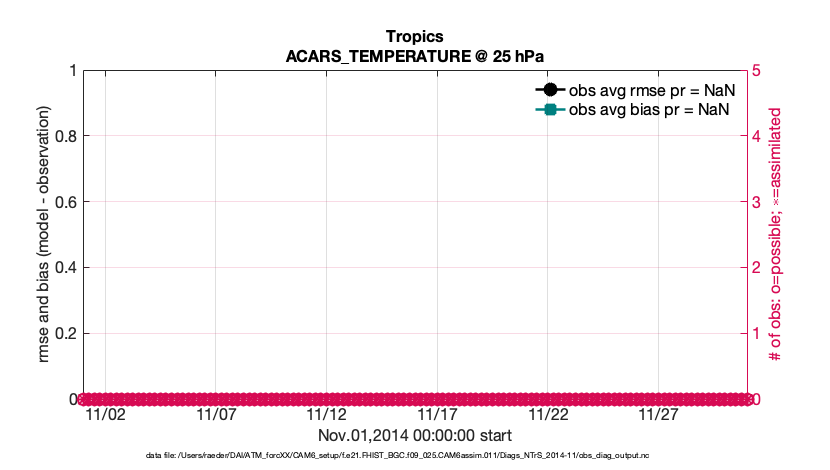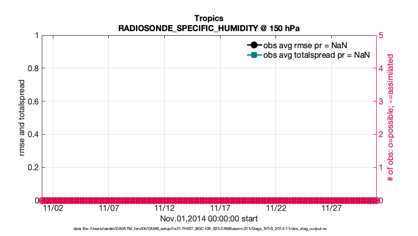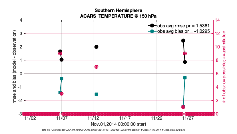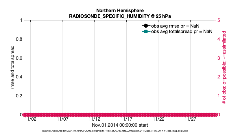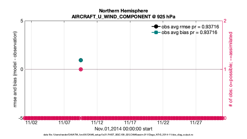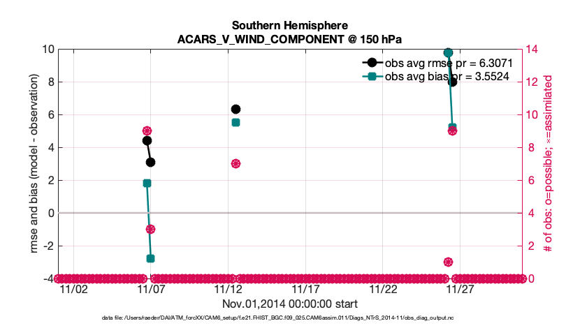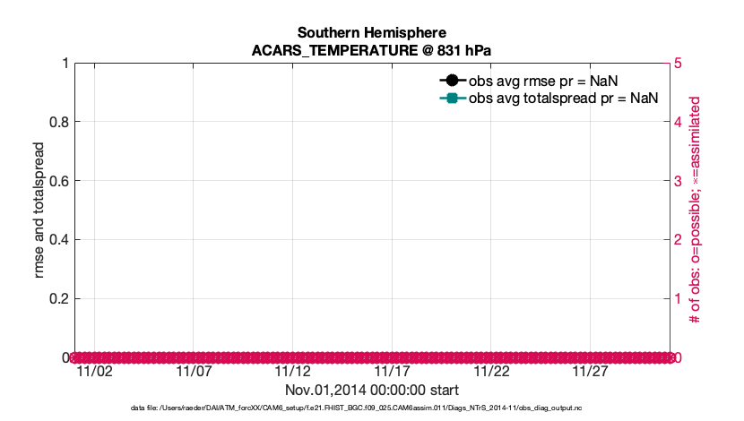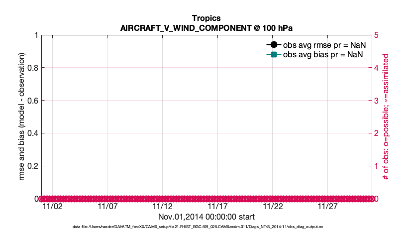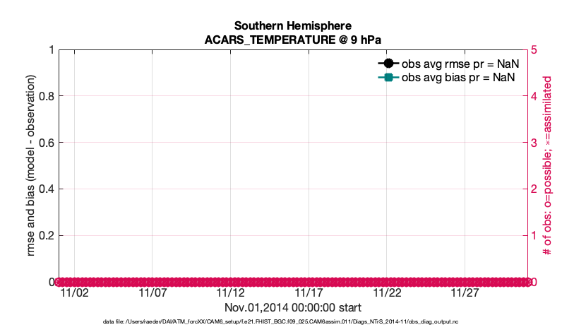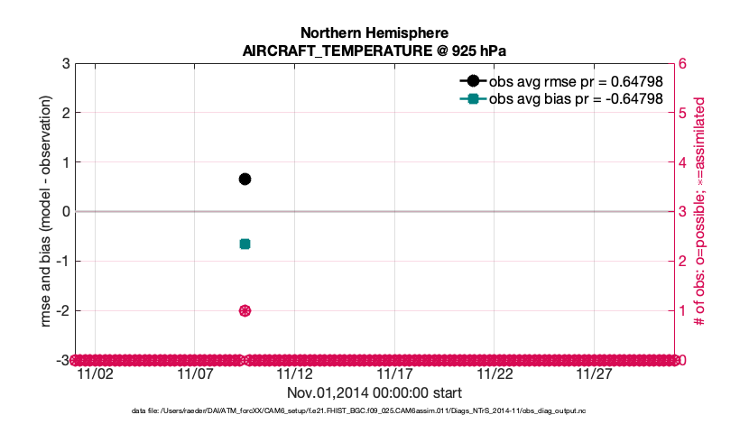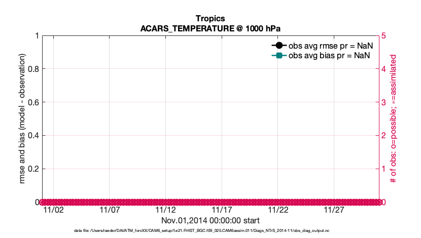 For each observation kind, the root-mean-squared-error (RMSE) is plotted together with: (i) BIAS and (ii) TOTALSPREAD. The number of available, assimilated (evaluated) and rejected observations are also shown on the plots.